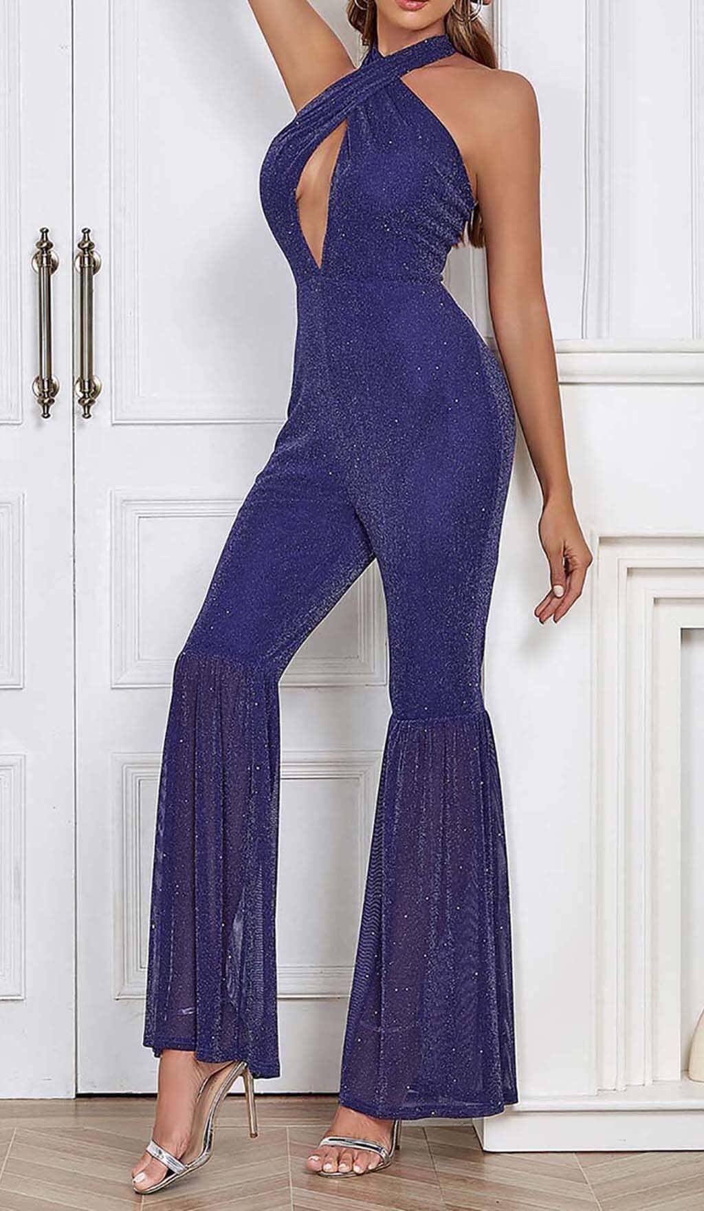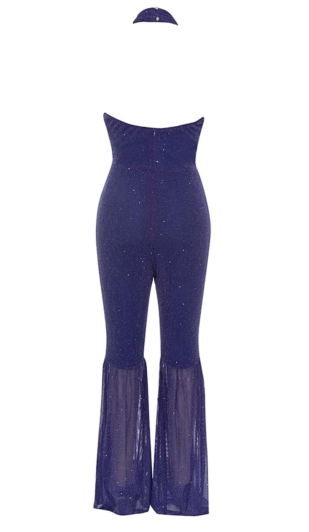 HALTER NECK BACKLESS FLARE LEG JUMPSUIT