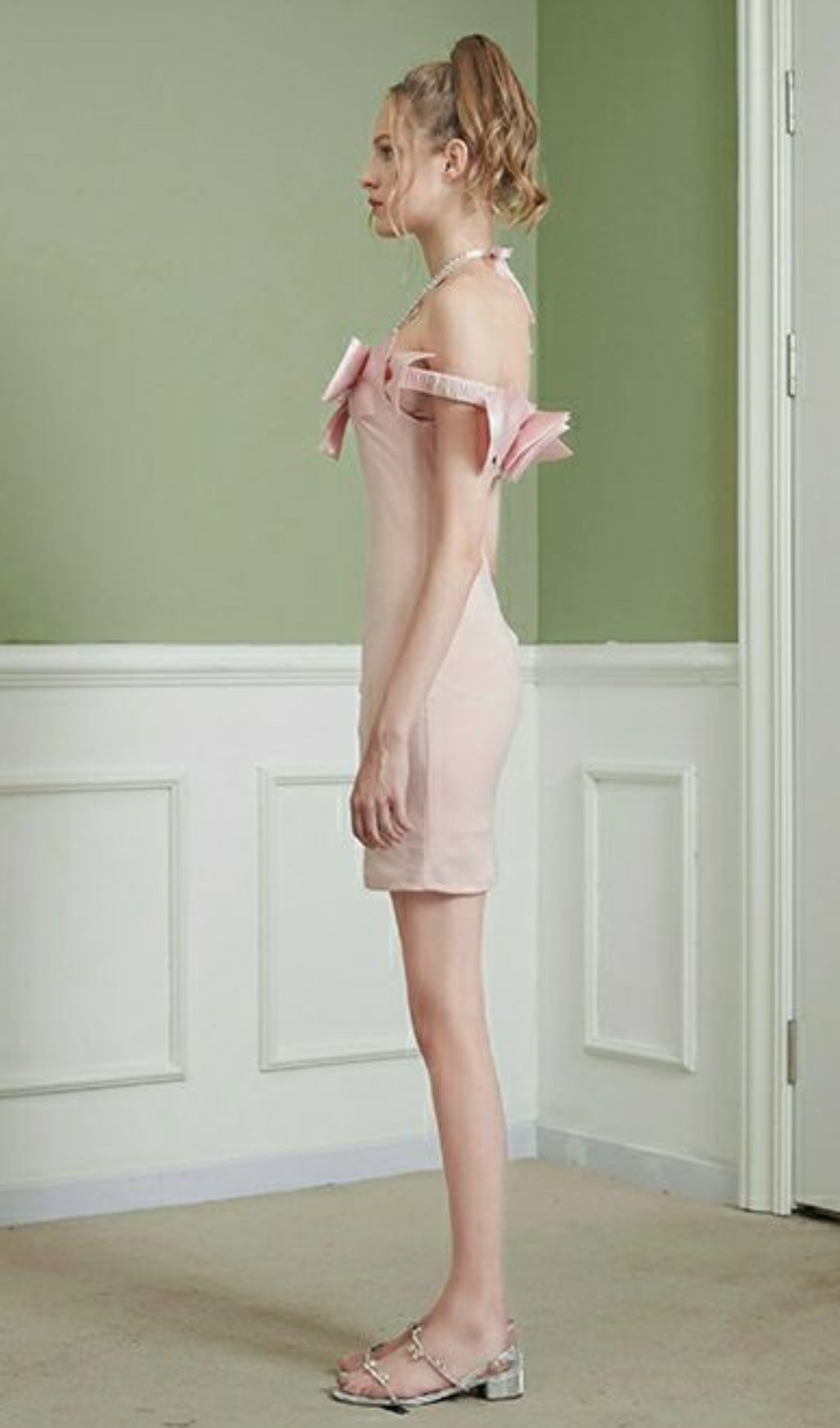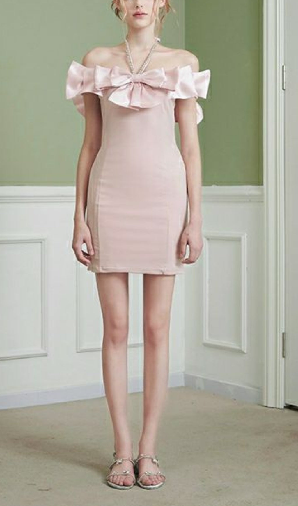 HALTER NECK BOW MINI DRESS IN PINK