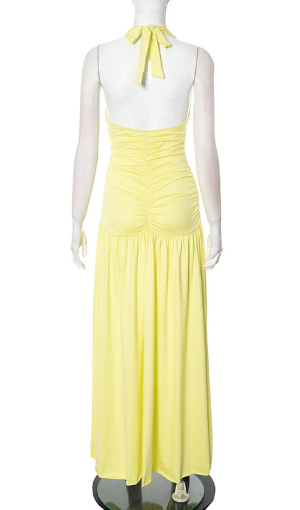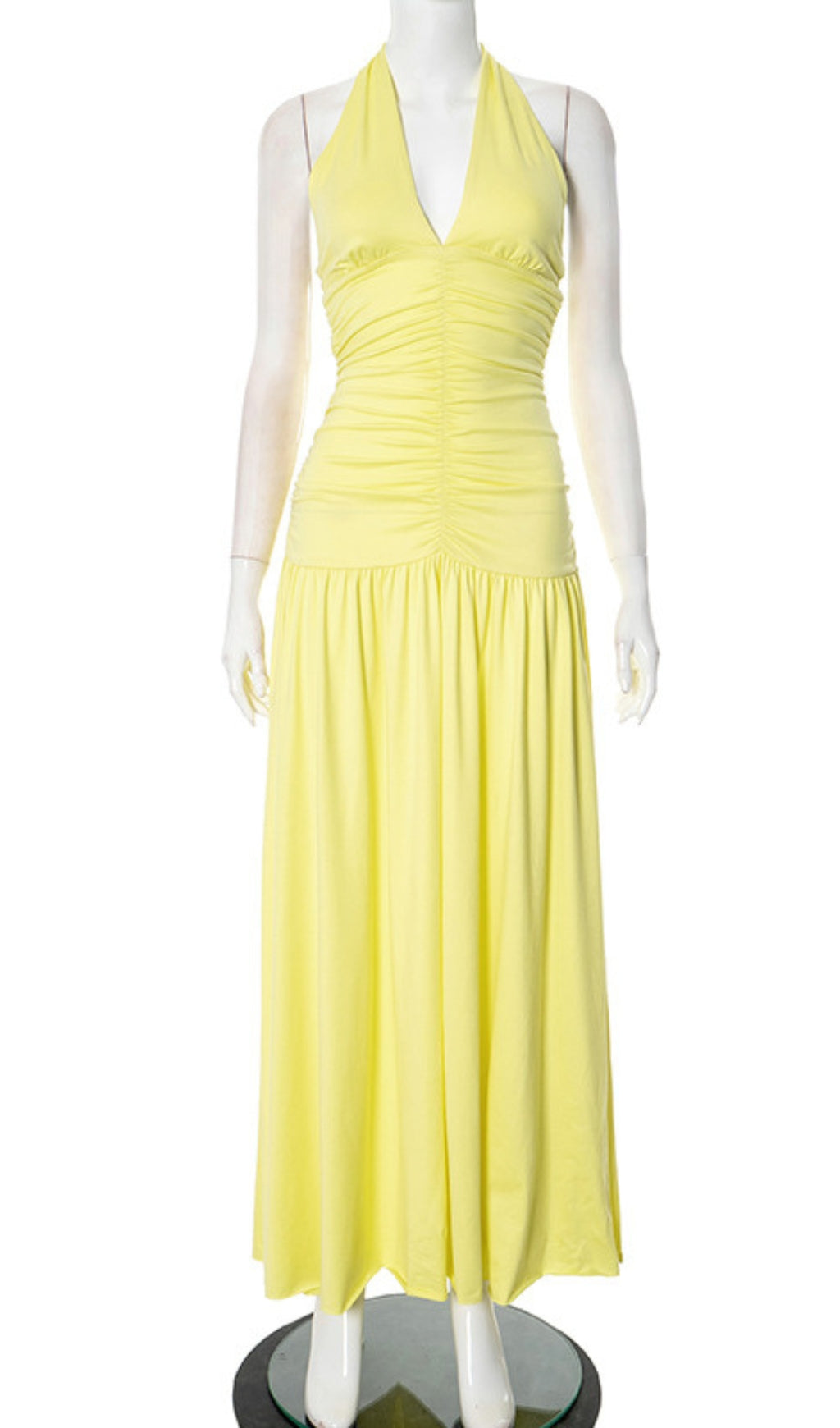 Halter Neck Ruched Maxi Dress in Yellow