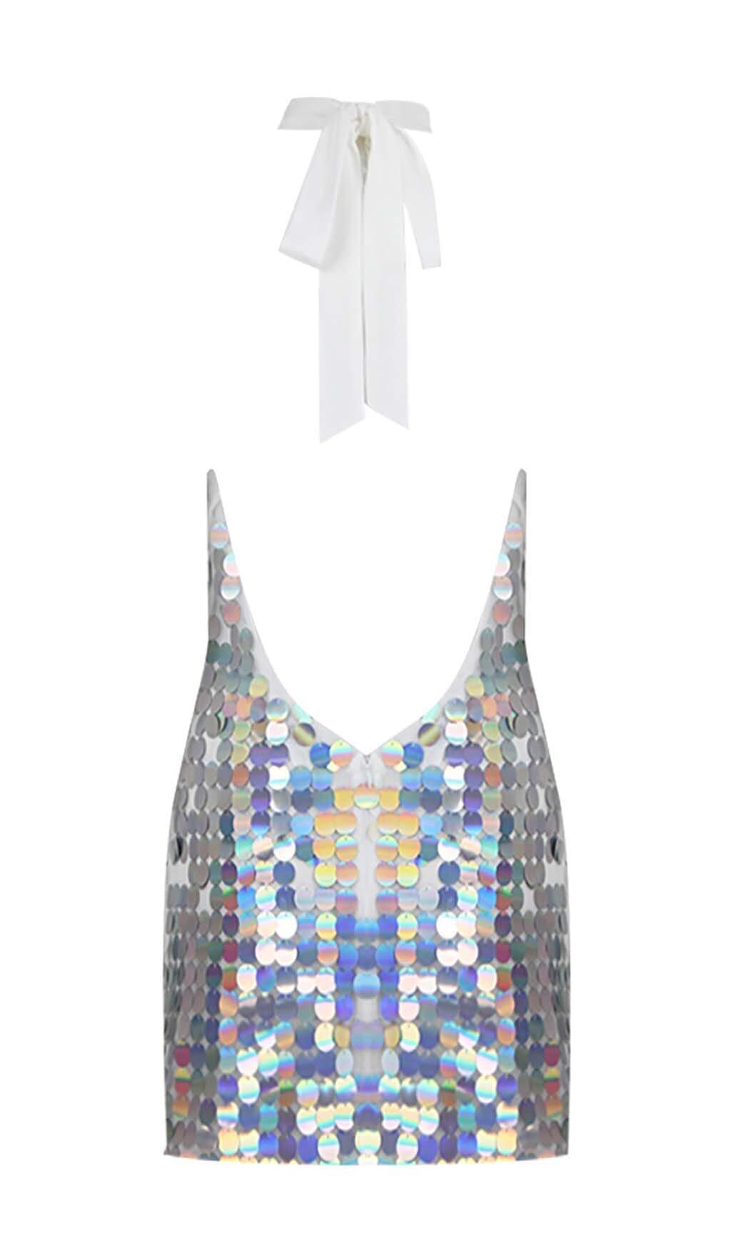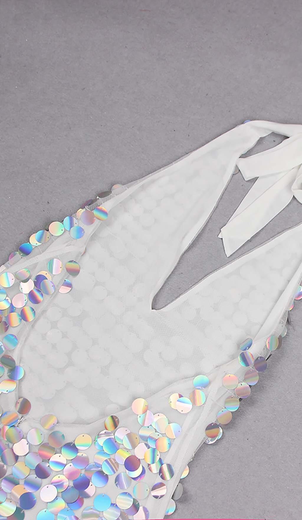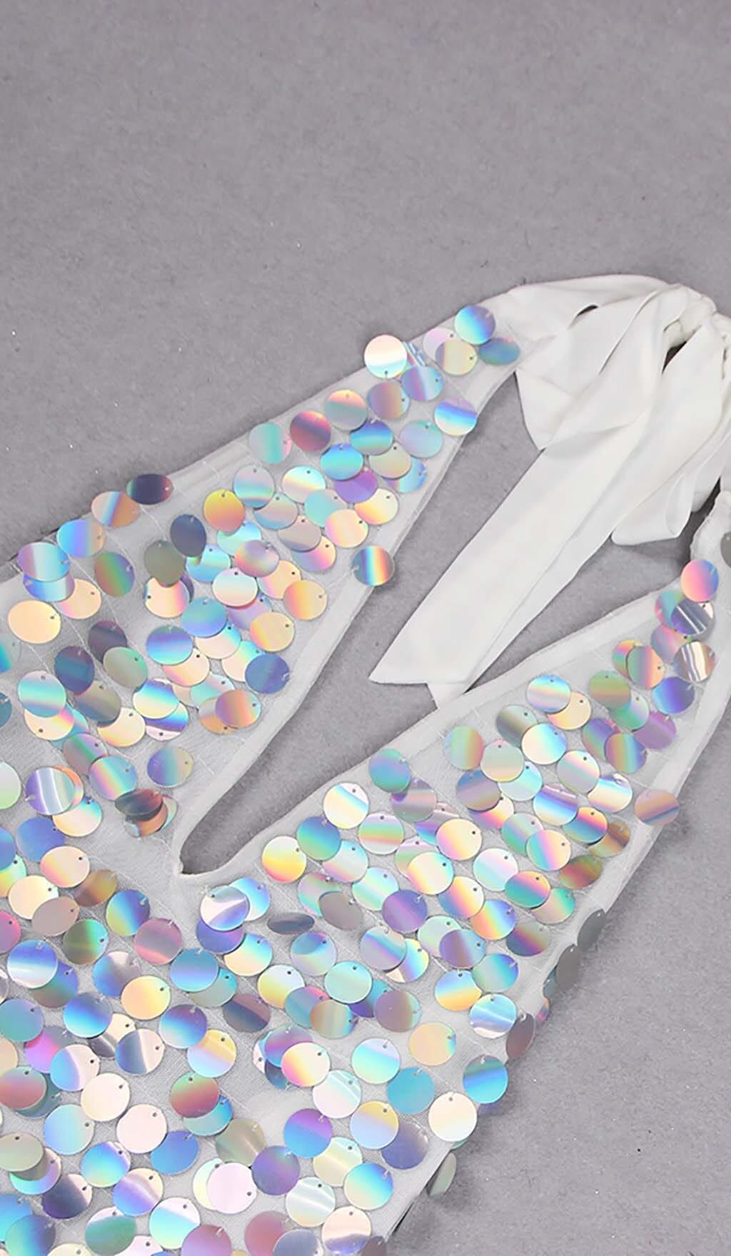 HALTER SEQUIN MINI DRESS IN MULTI-COLOR