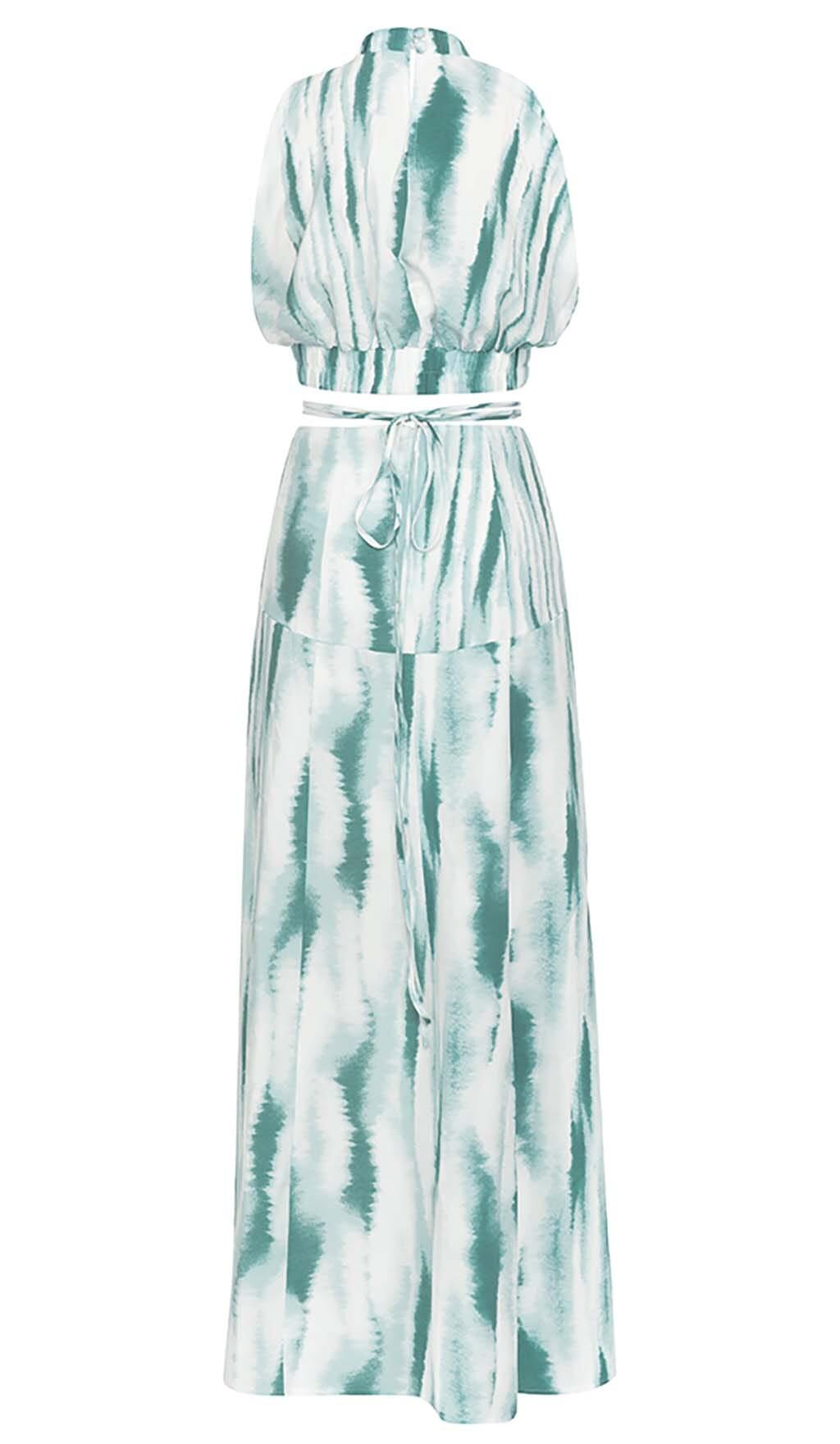 The halter neckline adds a touch of elegance, while the cutout back adds a flirty and stylish element. It's the perfect combination of sophistication and fun. The dress is designed to flow gracefully with each step, with a skirt that sways beautifully to your ankles.
