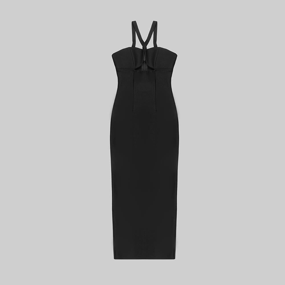 HALTER STRAPLESS MIDI DRESS IN BLACK