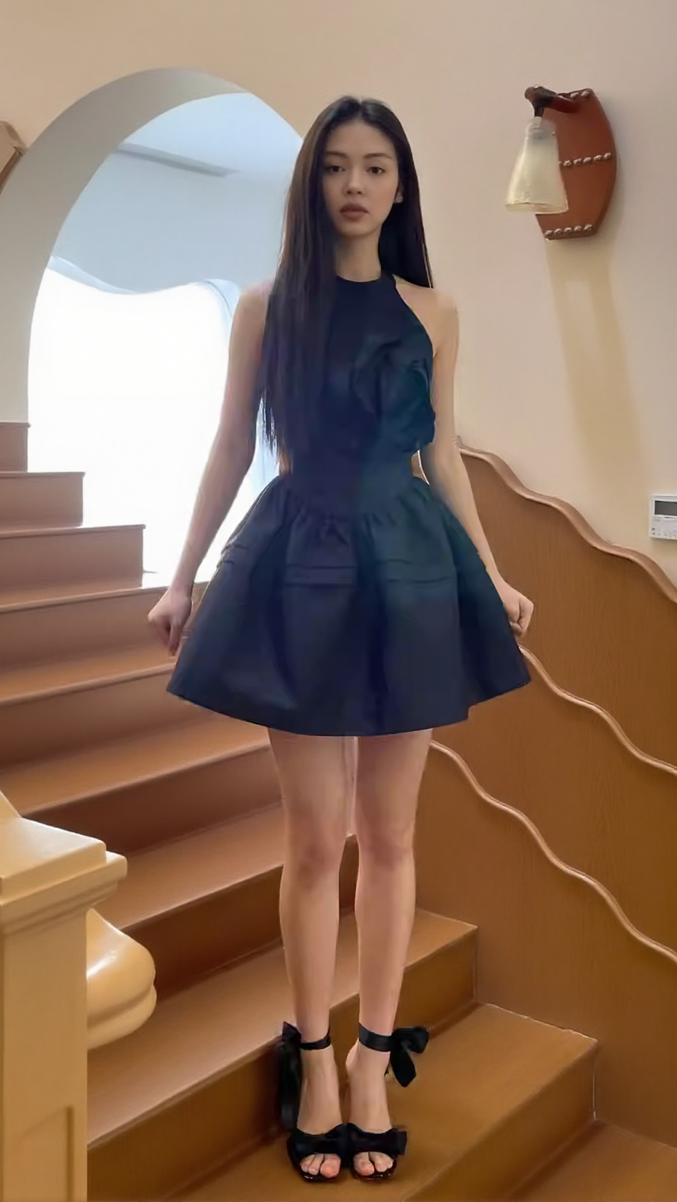 Elevate your style game with our Halterneck Rose Mini Dress in Black. This dress features a trendy halterneck design and an off-shoulder mini skirt, making it perfect for any occasion. Feel confident and chic in this must-have dress.