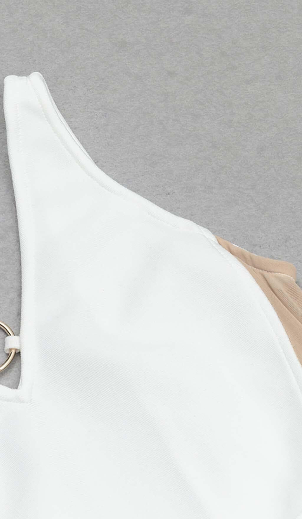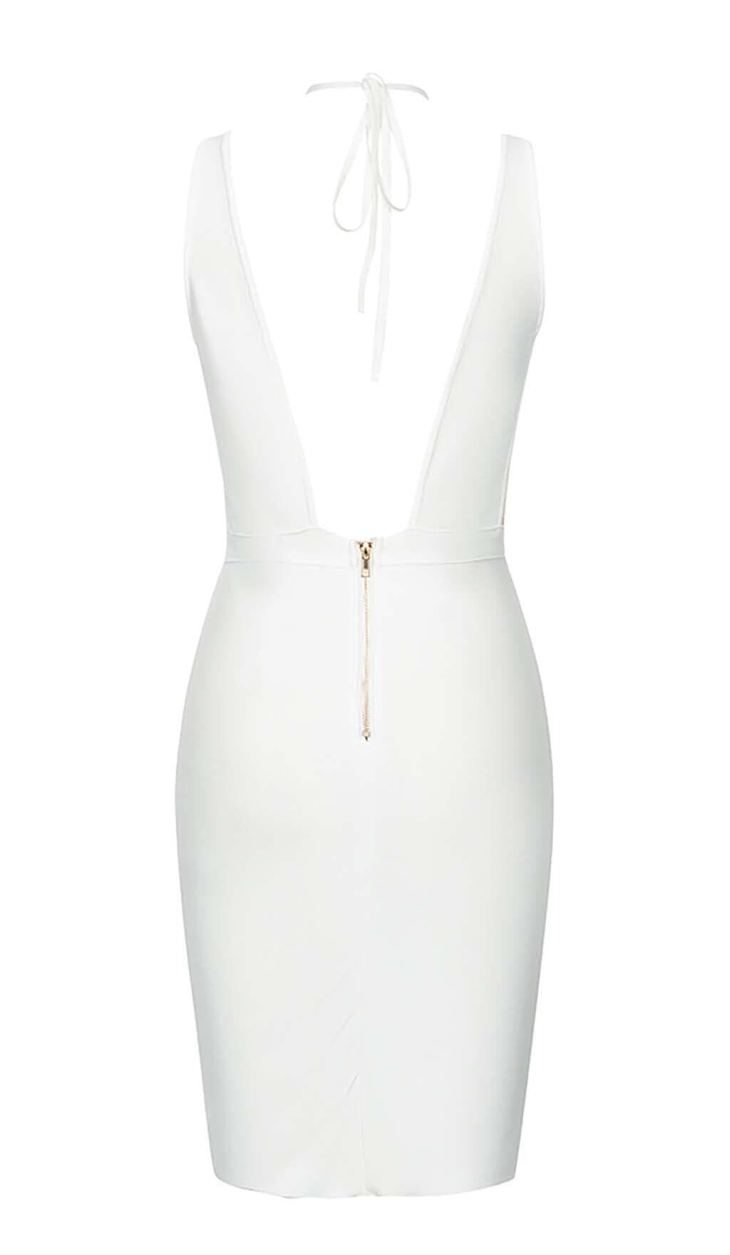HALTERNECK STRAP DETAIL MIDI DRESS IN WHITE