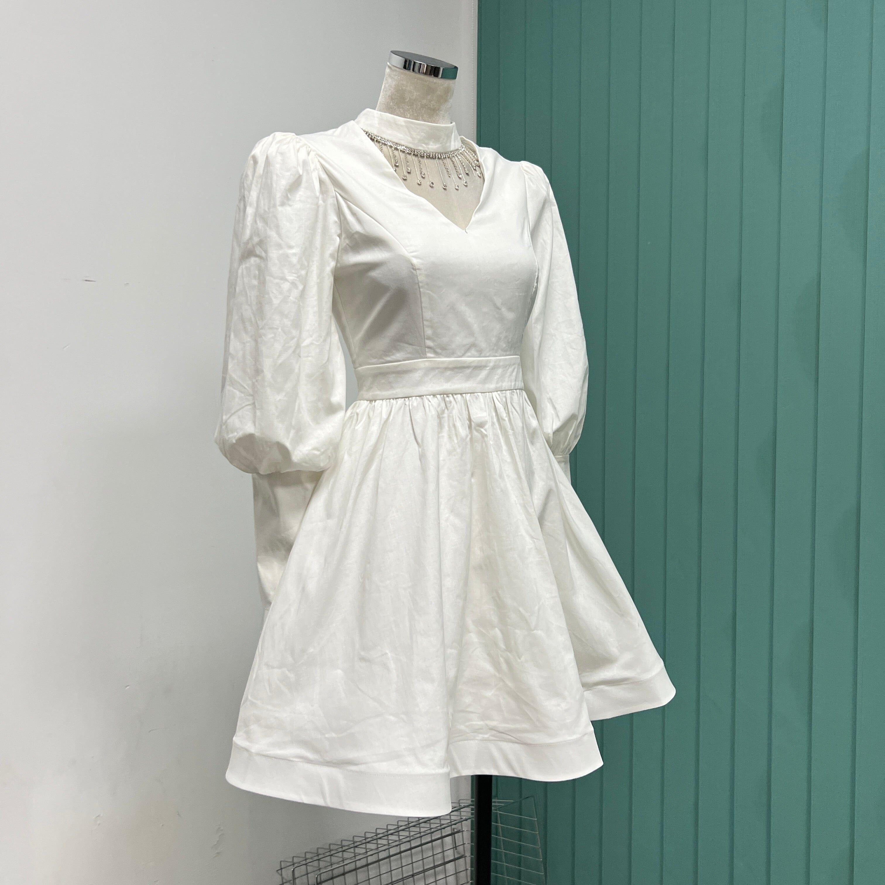 Discover an eye-catching look with this Halterneck V-neck Mini Dress. Puff sleeves and sparkling rhinestone fringe add drama to any occasion. Feel confident and glamorous in this stunning mini dress.