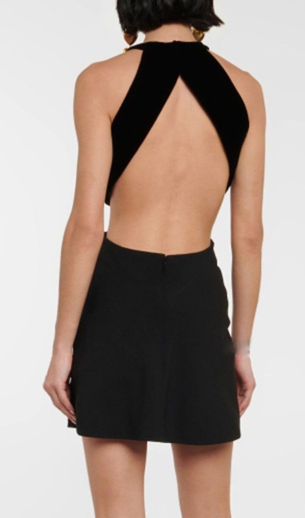 HANGING NECK BACKLESS WAIST HOLLOWED OUT DRESS IN BLACK