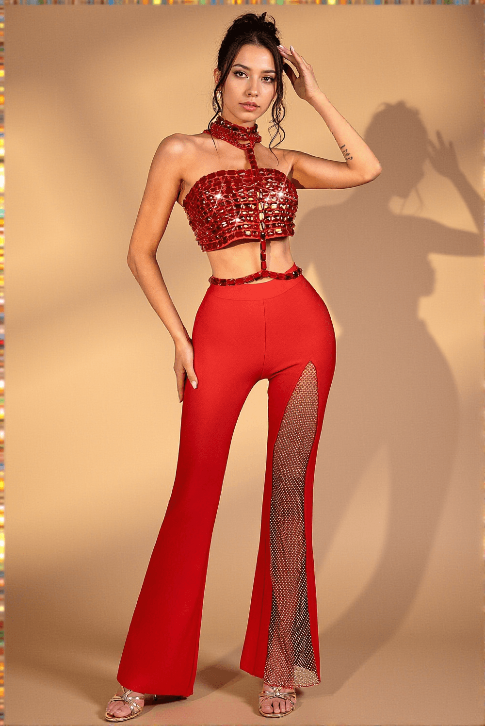 The Red Mini Rhinestone High Neck Top is a statement piece designed to capture attention and elevate your ensemble with its luxurious sparkle. Perfect for red carpet events, gala nights, or any occasion where you want to stand out from the crowd.