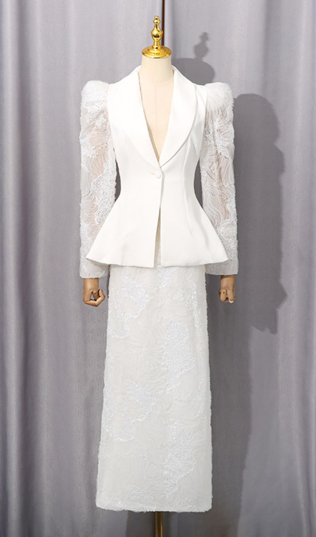 Step into unparalleled sophistication with the Hawise Sequin & Lace Peplum Two-Piece Set, an exquisite coordinated ensemble designed to make you the undisputed center of attention. This luxurious set perfectly blends modern tailoring with delicate embellishments, crafting a look that’s both powerful and gracefully feminine.