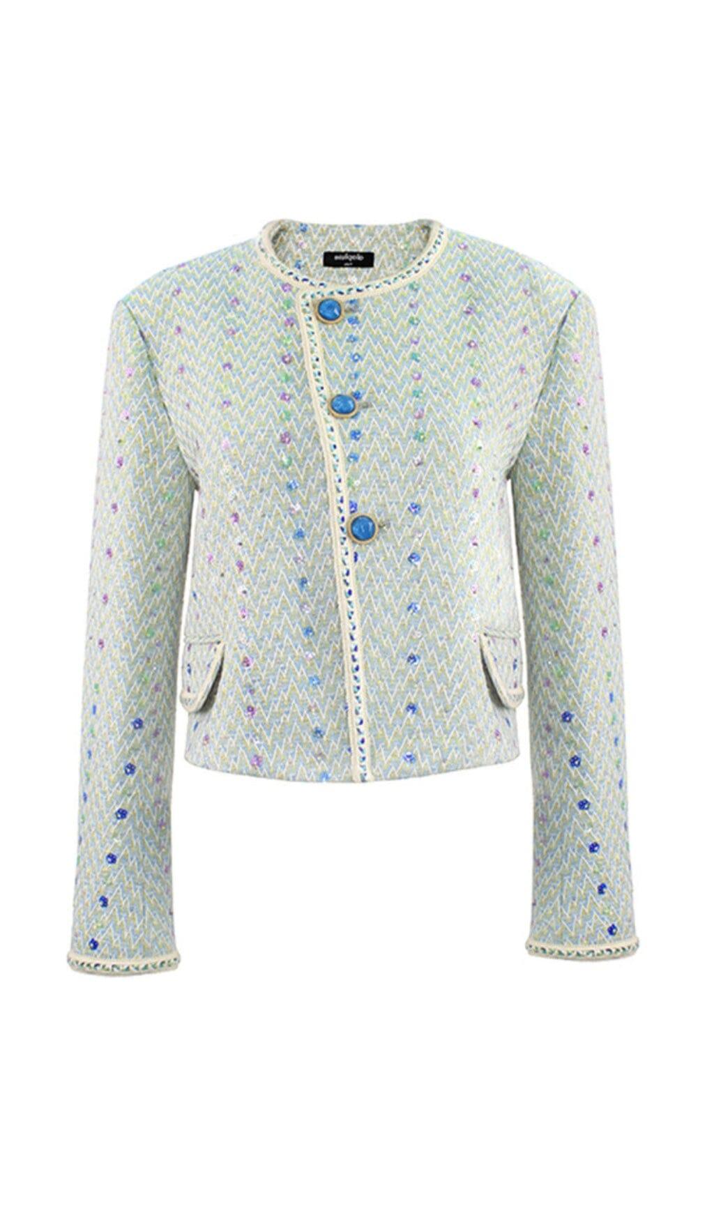 HEAVY SEQUIN EMBROIDERED SMALL FRAGRANT STYLE JACKET AND SKIRT