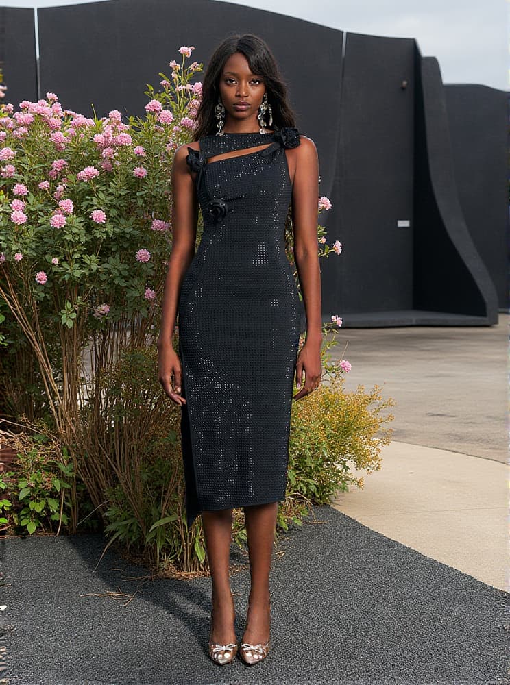 The Hecate Flower Embellished Bandage Midi Dress will take your outfit to the next level of glamour. A timeless black hue combines with intricate flower detailing for an understated but elegant look. Its midi length silhouette offers a sexy fitted look that shows off all your curves. Make an unforgettable statement in this stylish dress!