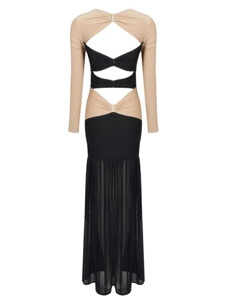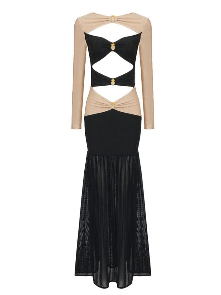 Look sophisticated and stylish in the Hedwig Patchwork Cutout Satin Dress. Featuring a unique cutout design, this dress is crafted from luxurious satin for a high-end finish. The patchwork detailing adds a chic touch, making it perfect for any special event.