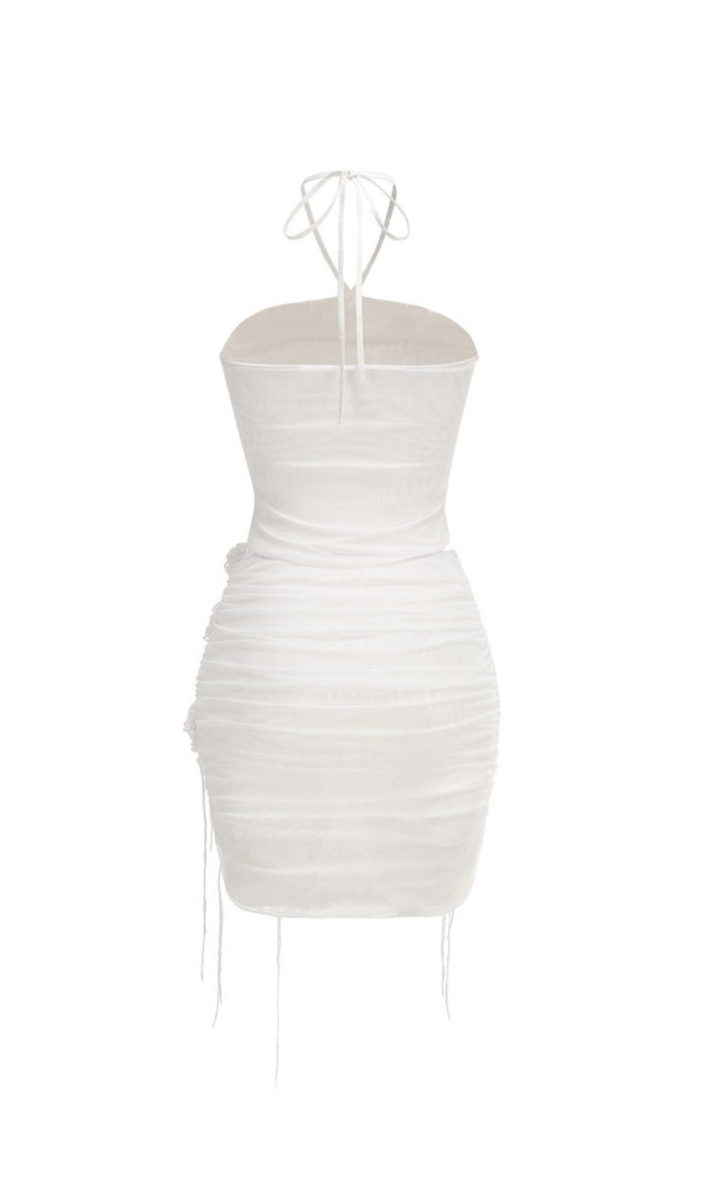 Elevate your wardrobe with the Helen Halter Ruched Mesh Floral Mini Dress in white. Crafted from delicate mesh with intricate floral detailing, this mini dress features elegant ruching that enhances the silhouette while offering a flattering fit. The halter neckline adds a sophisticated touch, framing the shoulders gracefully. Perfect for special occasions or evening outings, its lightweight fabric ensures both comfort and style. This dress seamlessly blends feminine charm with modern elegance, making it a versatile addition to your collection.