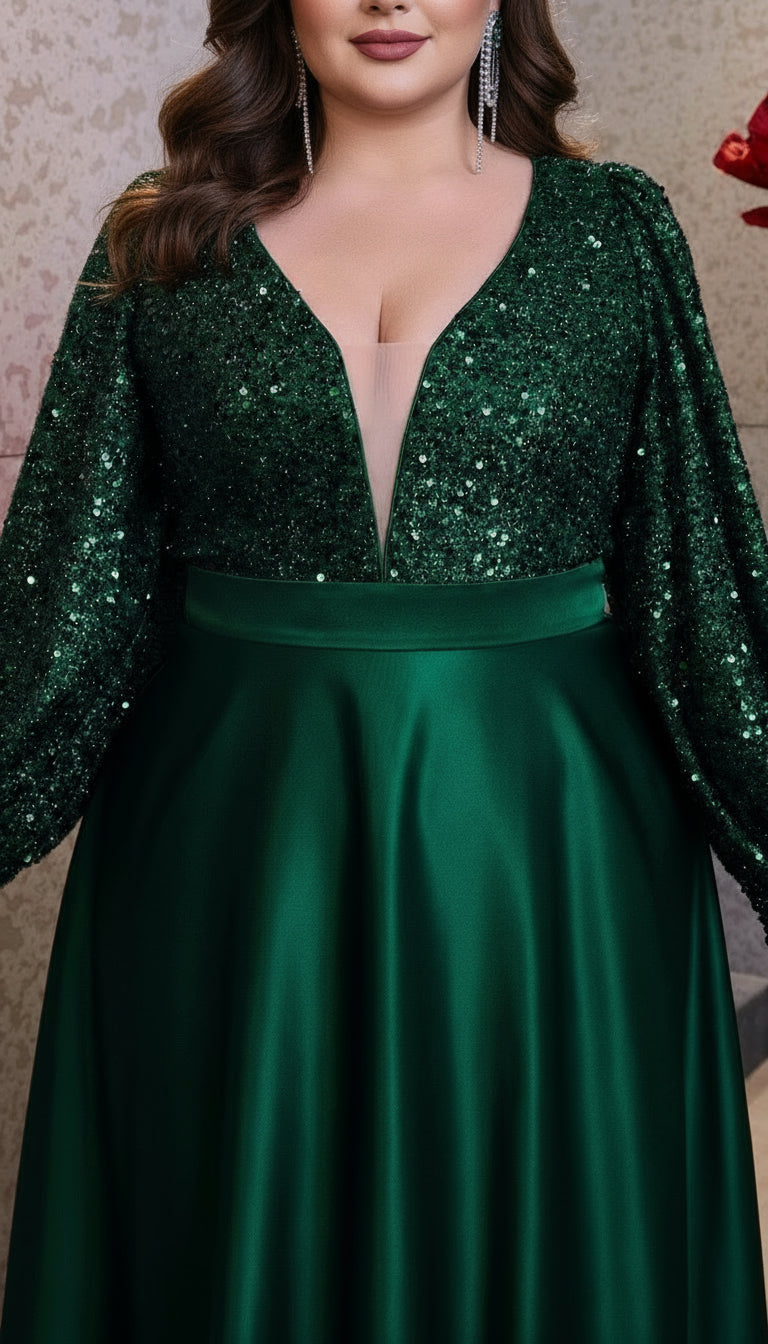 Unleash Your Inner Radiance: The Hendrika Emerald Sequin Plus Size Maxi Dress