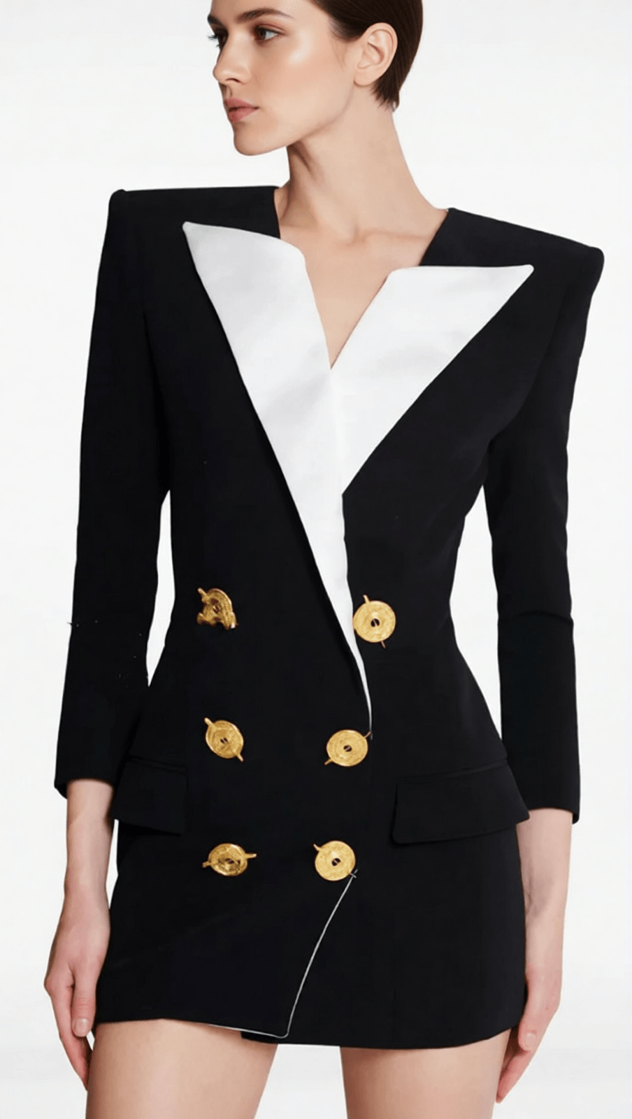 Redefine Power & Style: The Heulwen Black Tuxedo Blazer Dress