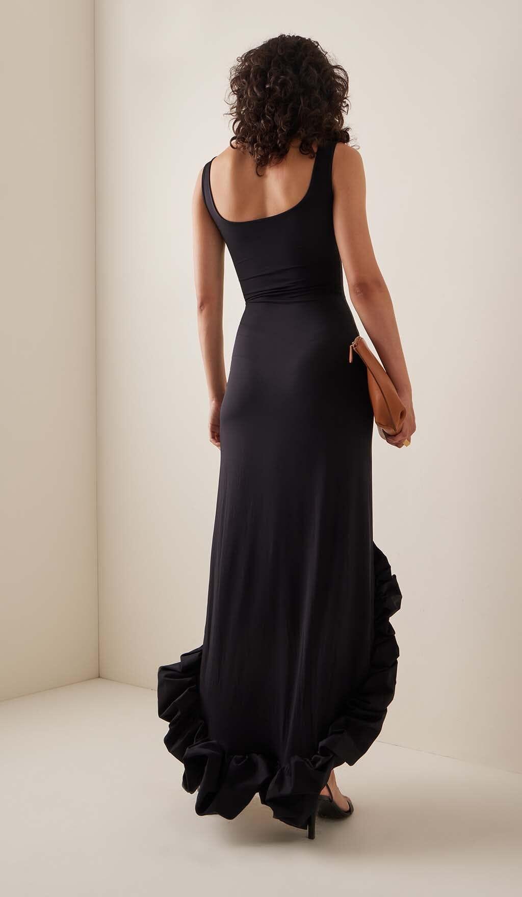HIGH-LOW HEMLINE DRESS IN BLACK