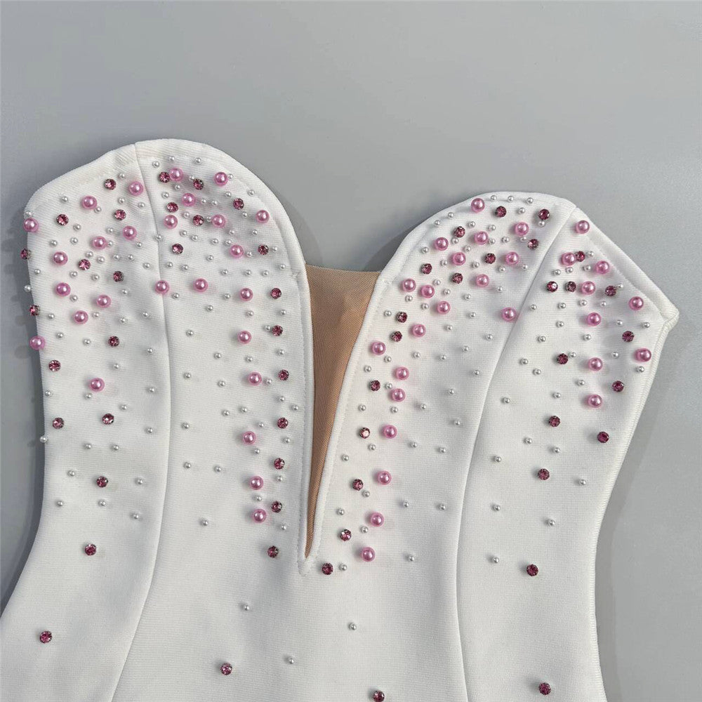 Step into the spotlight and captivate every gaze with the Hita Strapless Beaded Floral Bandage Mini Dress. Designed for the modern woman who embraces both strength and undeniable femininity, this dress is a masterpiece of design, blending exquisite details with a silhouette that celebrates your curves.