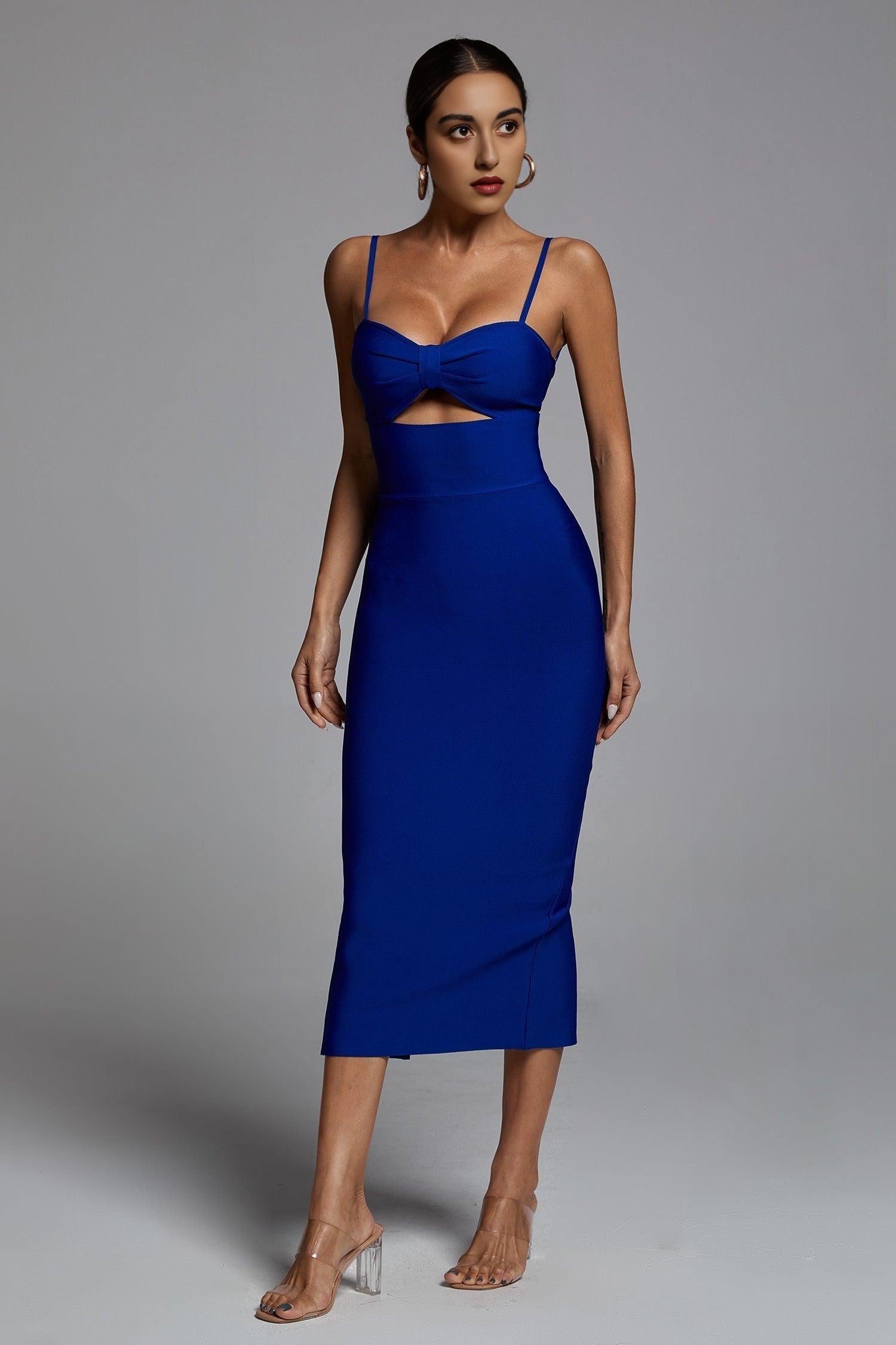 Introducing our stunning Hollow Bandage Dress in the elegant shade of Blue. This dress is a must-have for any fashion-forward woman looking to make a statement at special occasions or events. With its unique design and high-quality construction, it is perfect for those who want to stand out from the crowd.