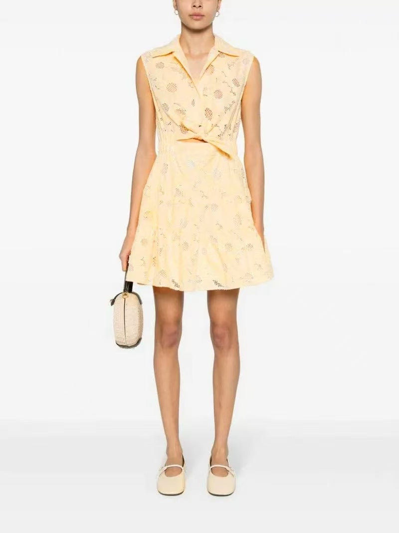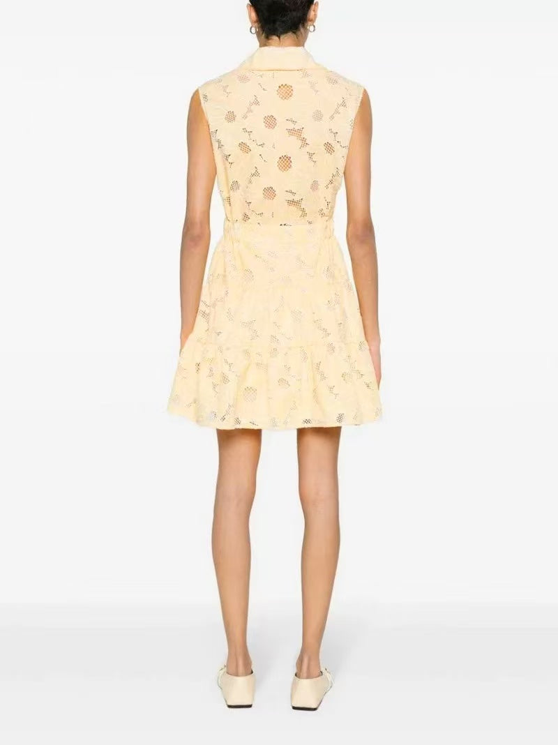 Hollow Flower Temperament Sleeveless Mini Dress·