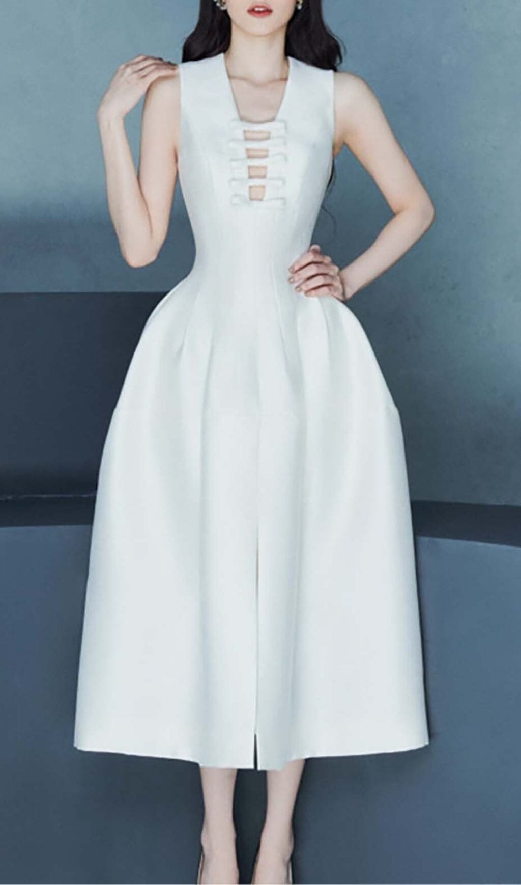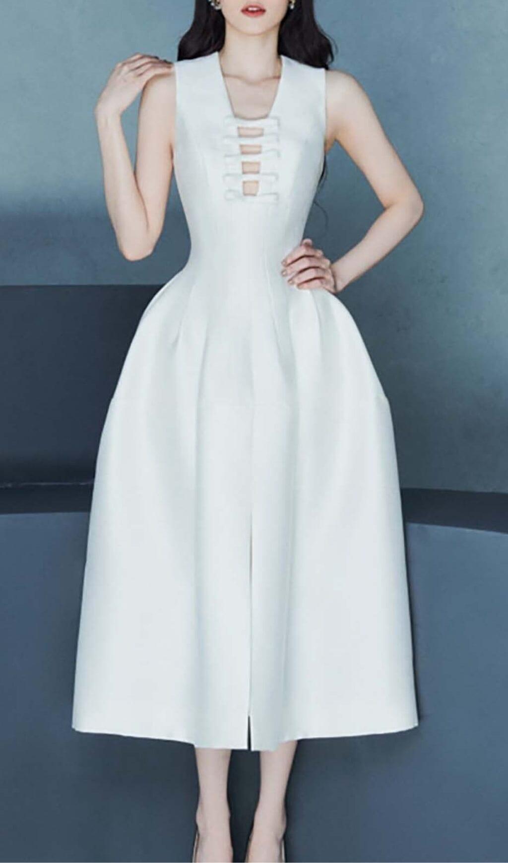 HOLLOW HIGH WAIST A-LINE DRESS