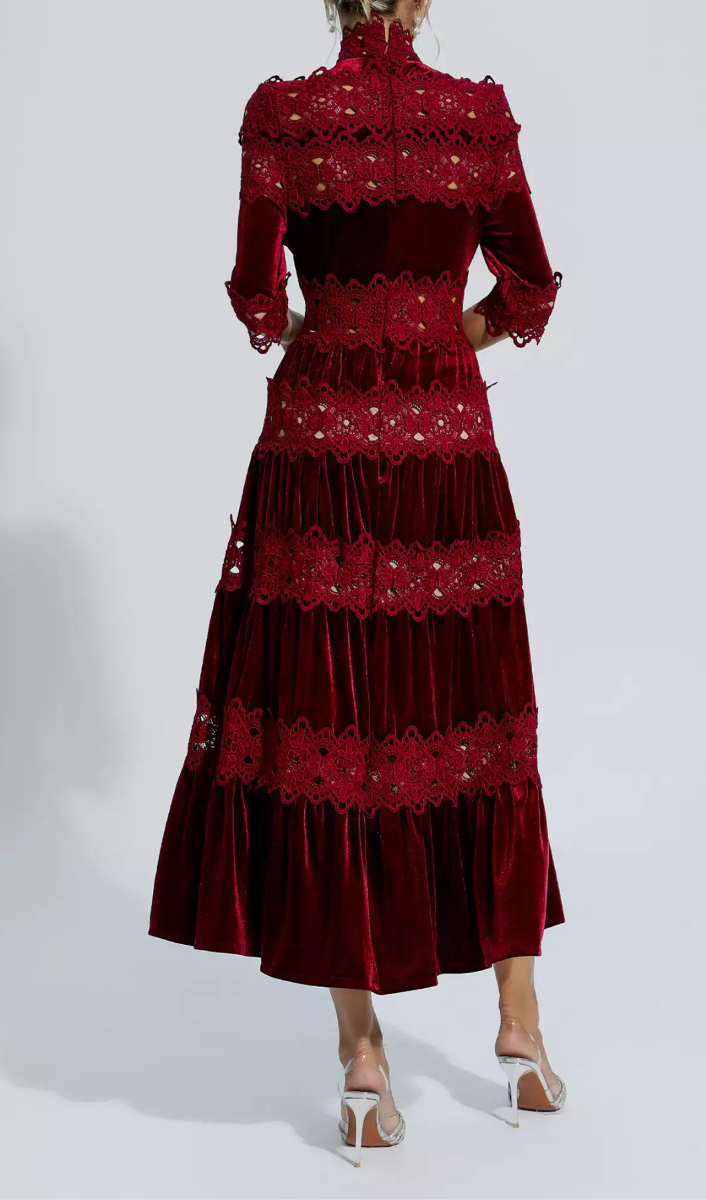 HOLLOW PATCHWORK VELVET DRESS IN RED
