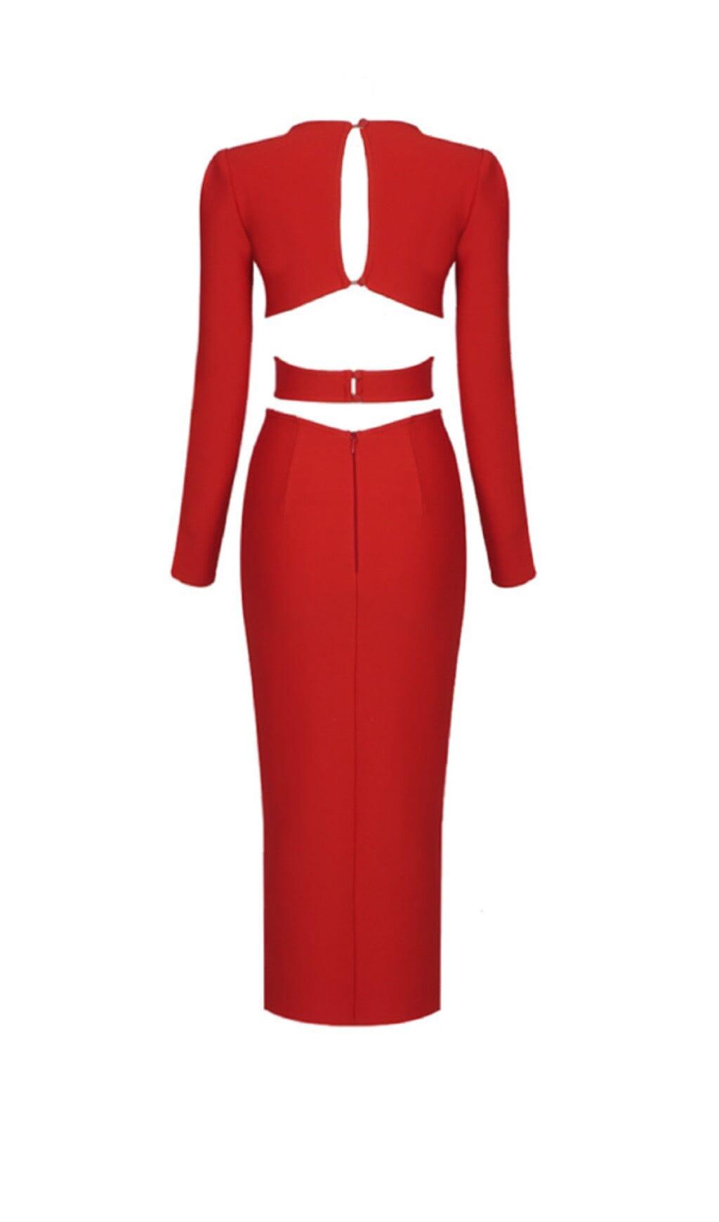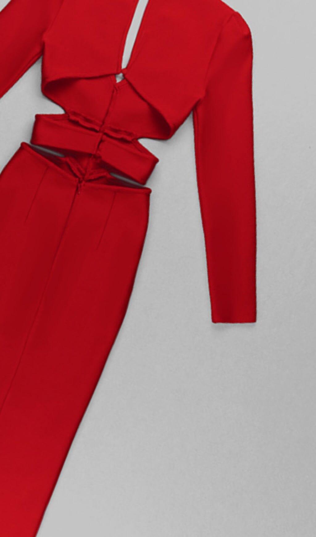 HOLLOW SLIM-FIT DRESS IN RED