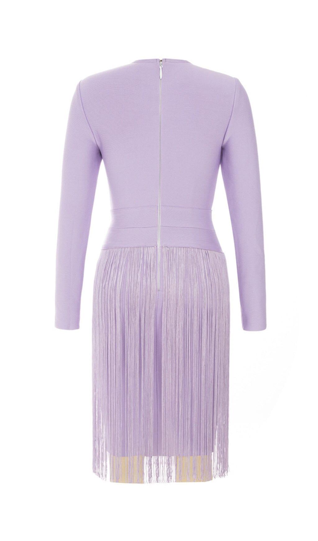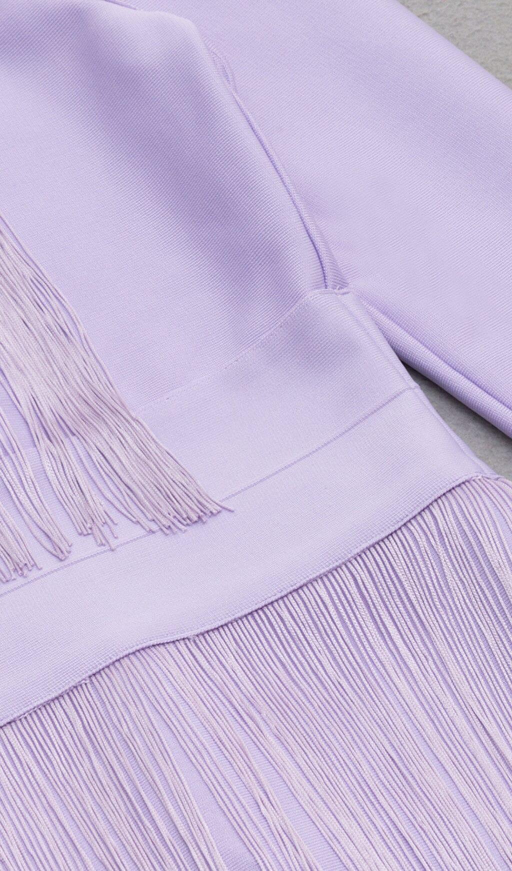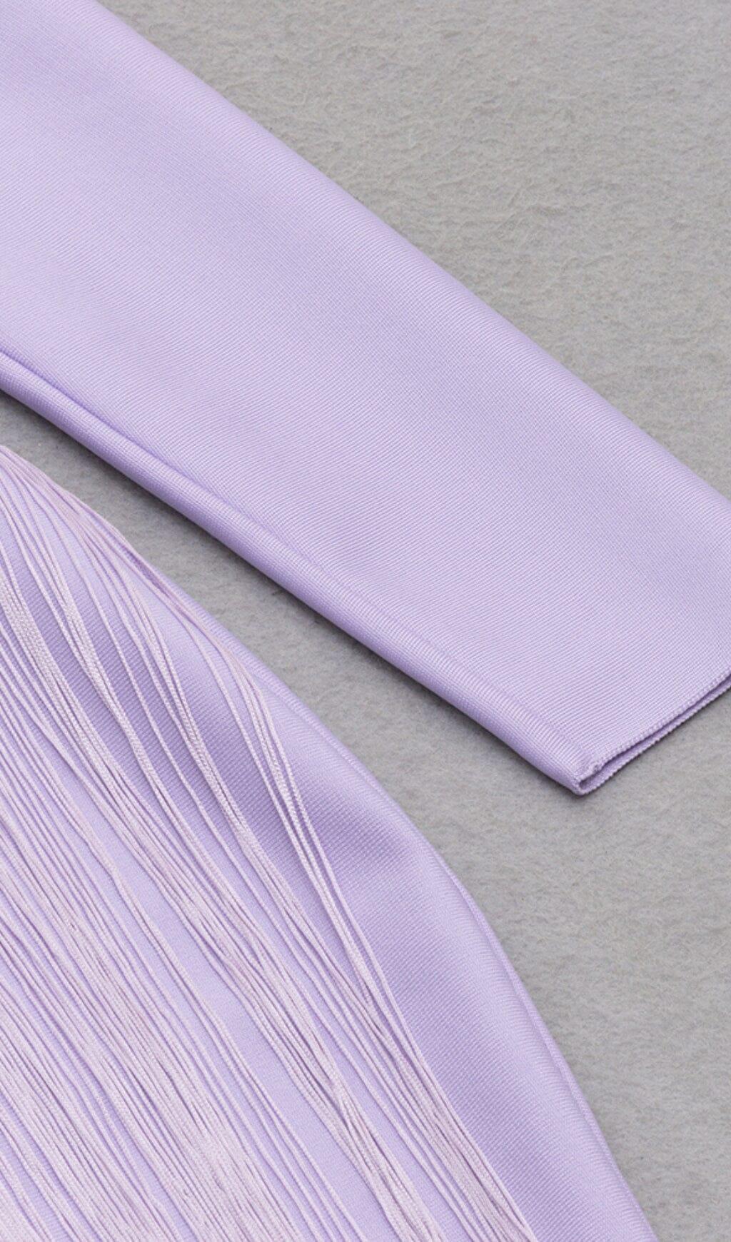 HOLLOWED-OUT SHOULDER FRINGED DRESS IN PURPLE