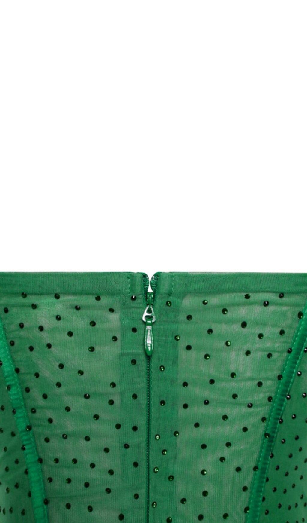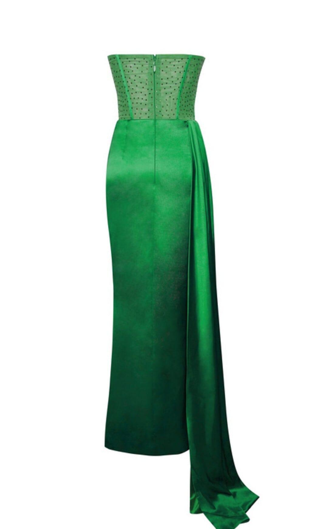 HOLLY GREEN CRYSTALLIZED CORSET HIGH SLIT SATIN GOWN