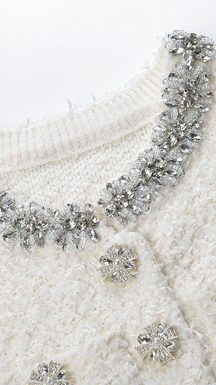 • Chic Pearl-Effect Embellishments: Exquisite pearl-like or crystal buttons cascade down the front and accent delicate faux pockets, adding a touch of classic elegance and visual interest.
