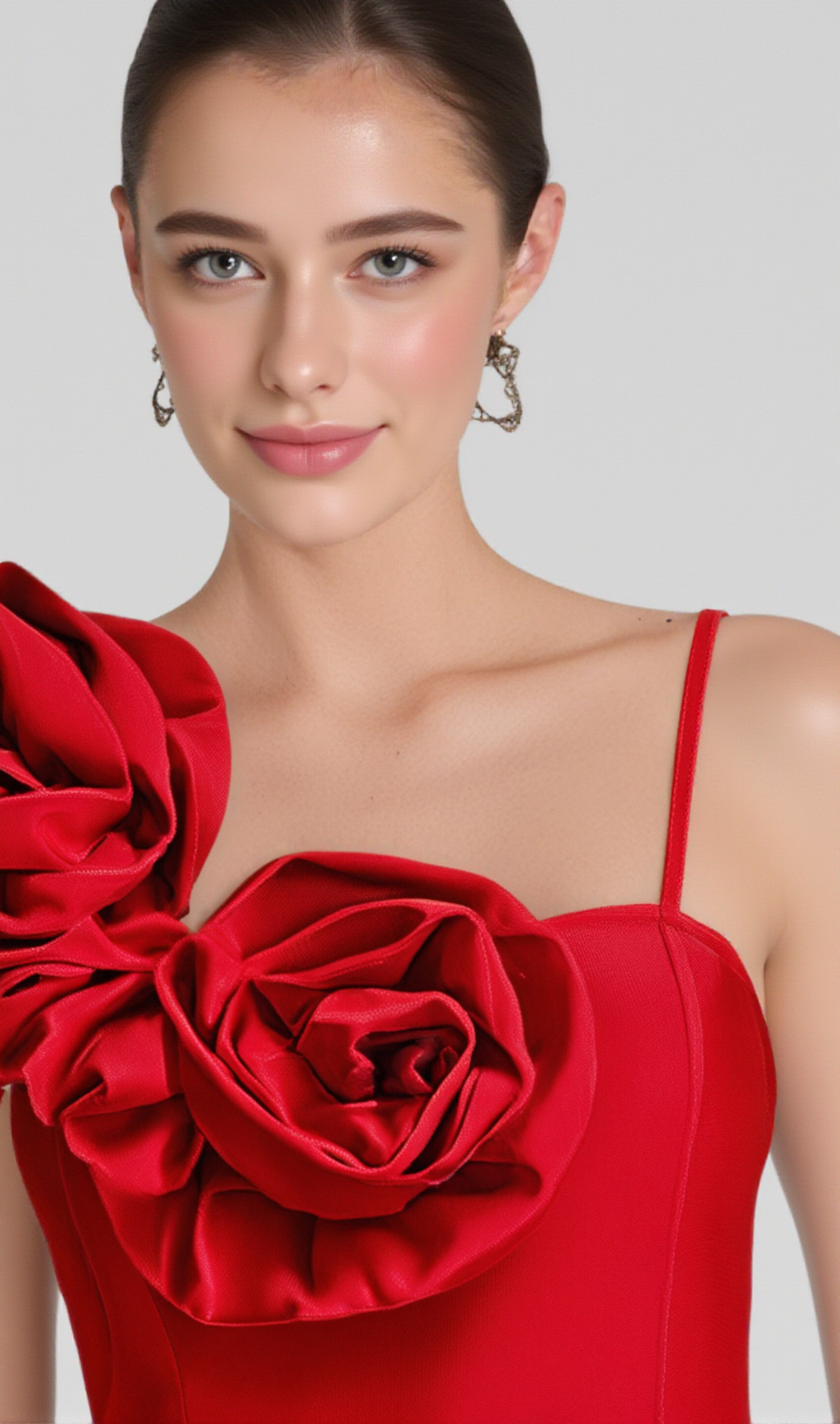 HUGE FLOWERS BANDAGE MIDI DRESS