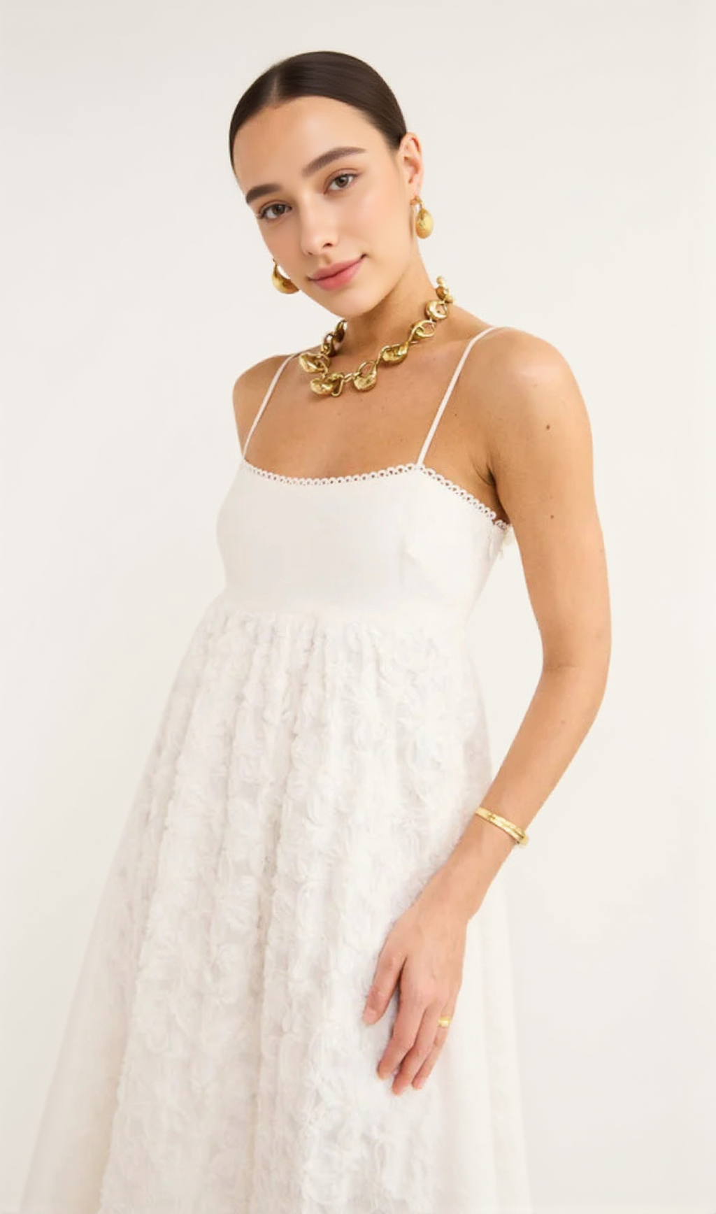 The Iggy Embroidered Midi Dress in Cream is the perfect addition to your wardrobe for any special occasion. Crafted from a cotton fabrication with an embroidered finish, this midi dress features a straight neckline, thin straps and will flatter any figure with its fitted bodice and relaxed midi skirt.With voluminous sleeves and elasticated cuffs, this piece is ideal for a bride-to-be, a summer getaway or cocktail events in the summertime.