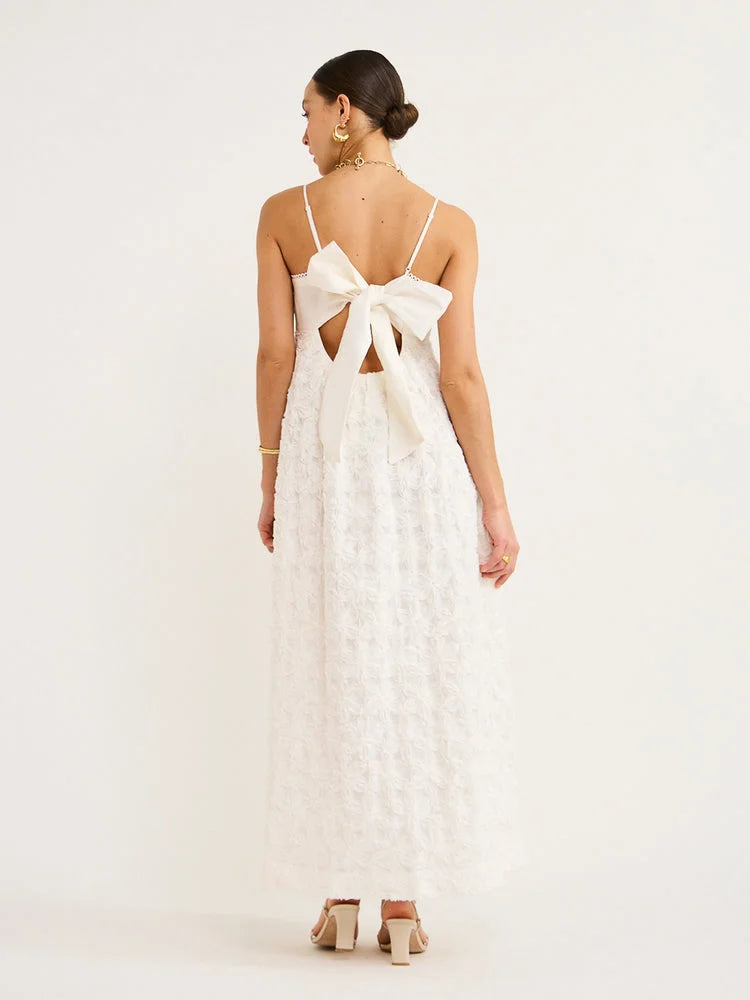 Iggy Embroidered Midi Dress In Cream