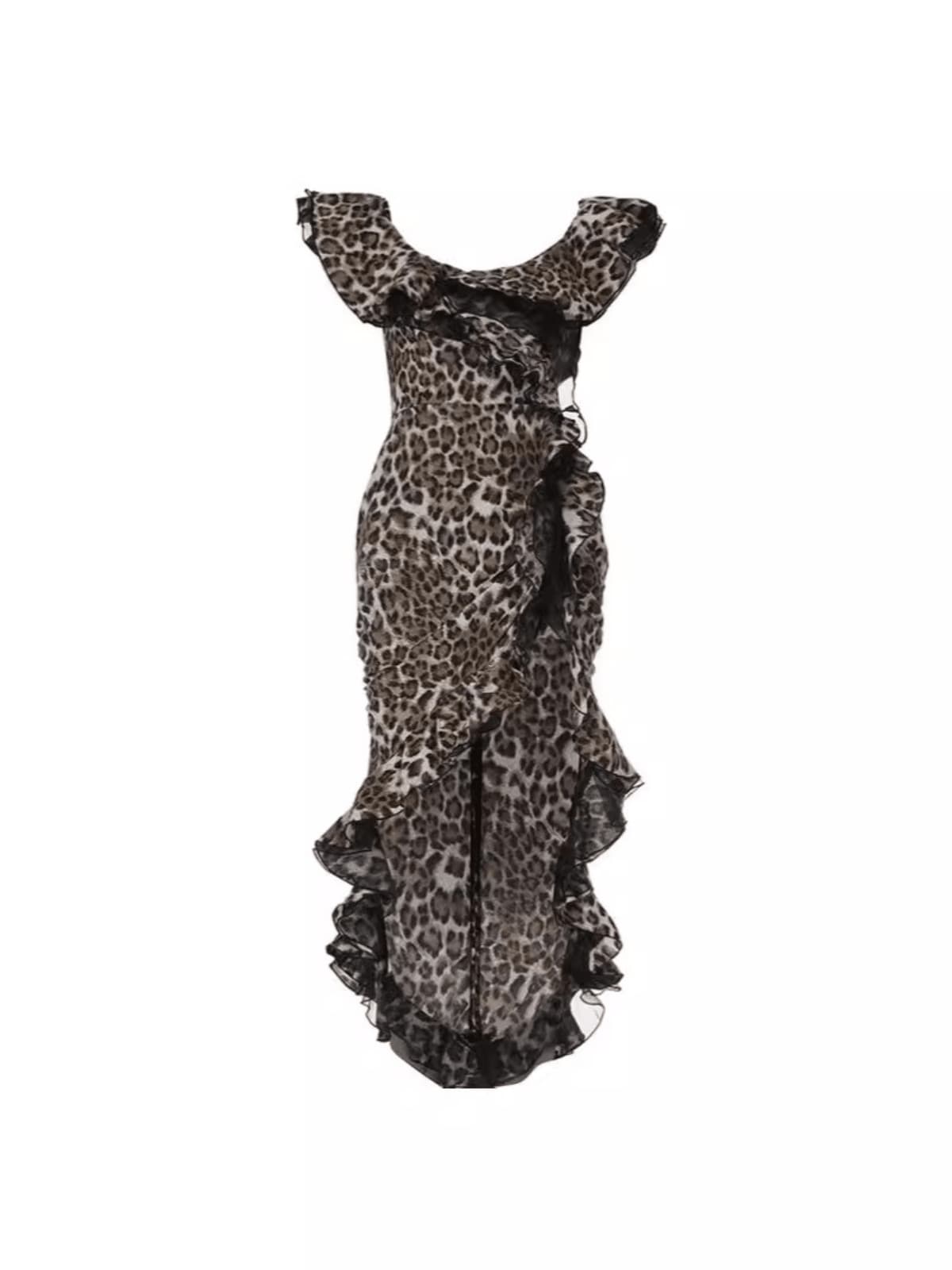 Dazzle and inspire with the Ike Off Shoulder Leopard Print Dress. This dress features a trendy off-shoulder design and eye-catching leopard print, sure to make heads turn. Elevate your style and stand out from the crowd in this must-have dress.