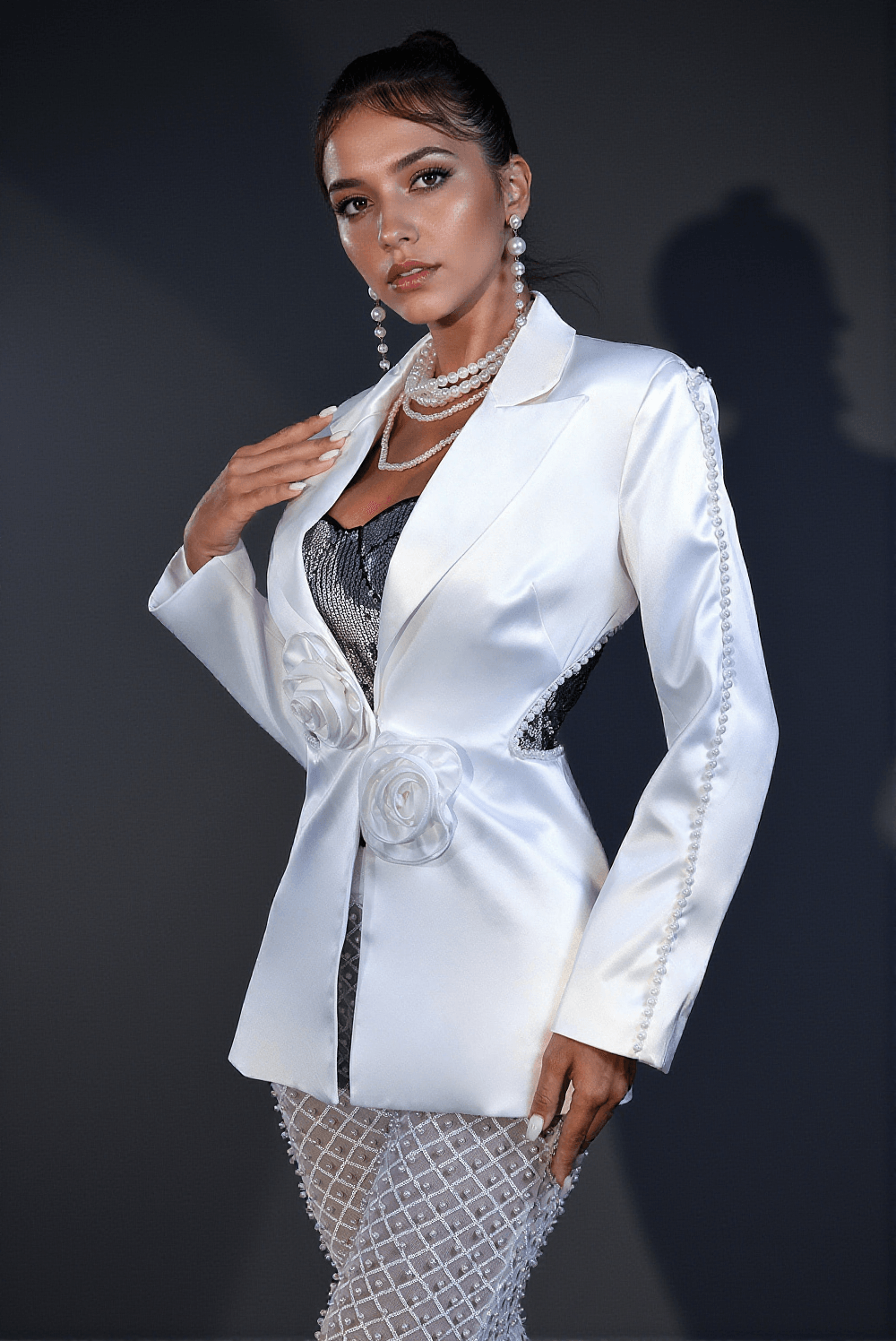 The Irela Pearl Floral Blazer Set features a stunning array of pearls and flowers that add an elegant touch. This design element not only elevates your appearance but also sets you apart at upscale events or special occasions.