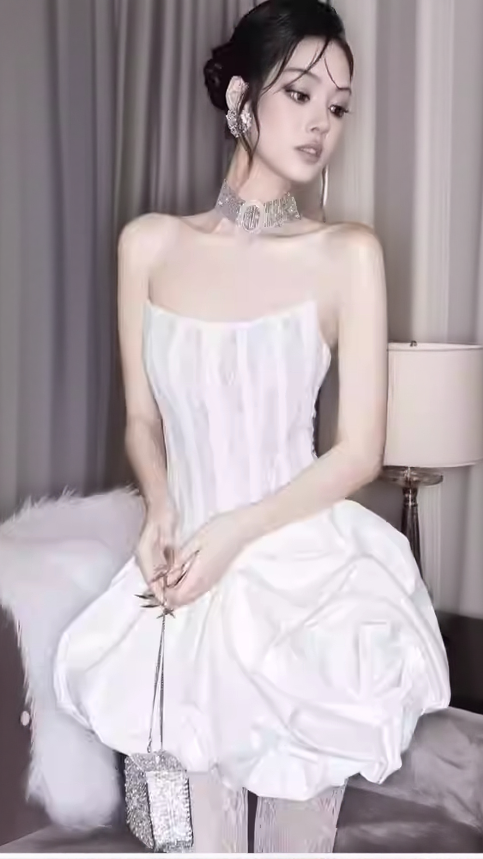 • Chic Bubble Mini Skirt: The voluminous, playful skirt creates a fun, youthful vibe while maintaining an air of refined elegance.