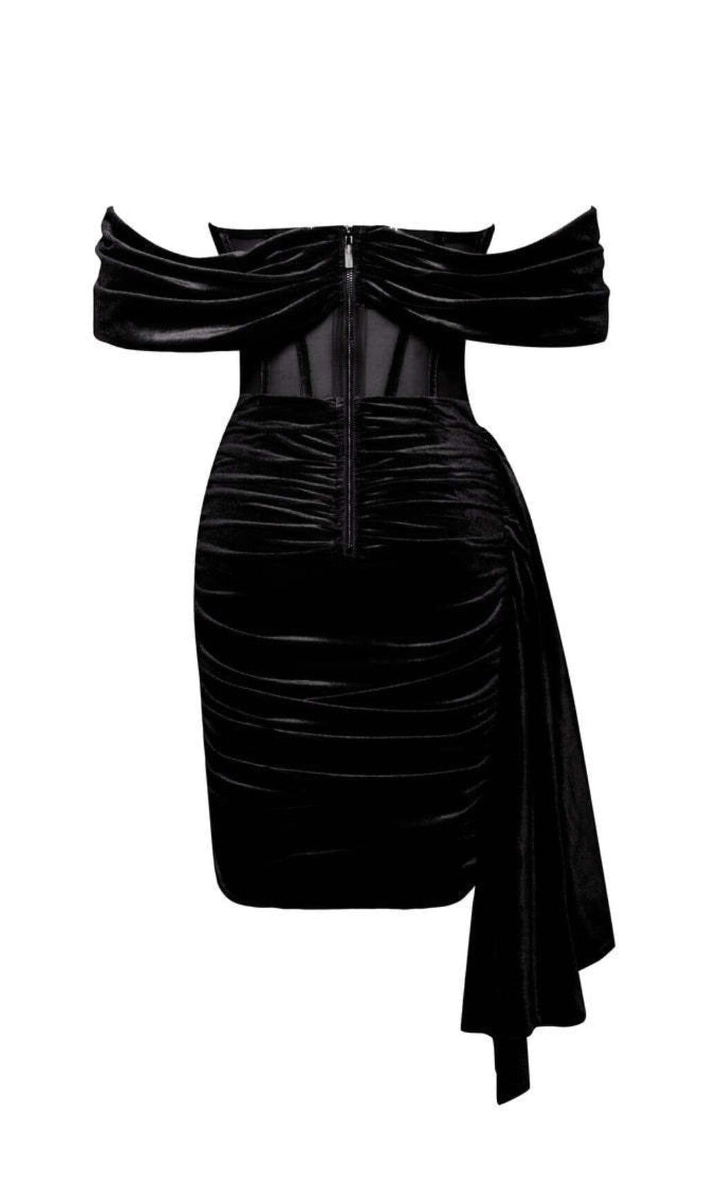 IRISA BLACK DRAPING OFF SHOULDER CORSET DRESS