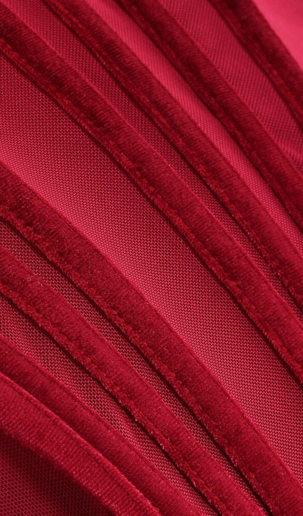 • Material: Made from a combination of Stretch Velvet, Stretch Mesh, and a Boned Corset for the perfect fit and comfort.