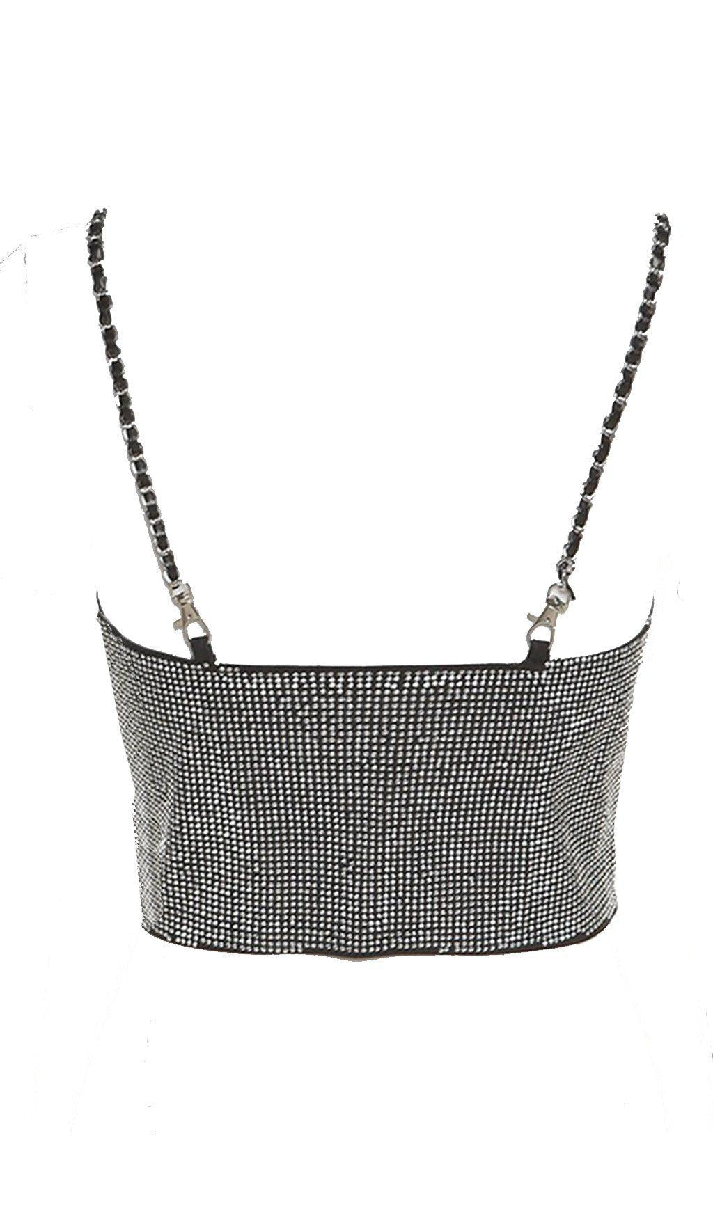 Introducing our Iron Chain Sling Hot Drill Corset Vest, a truly unique and stunning piece that will set you apart from the crowd. With its intricate design and attention to detail, this vest combines the edginess of chains with the elegance of hot drill embellishments. Whether you're looking to make a statement at a special event or add a touch of glamour to your everyday wardrobe, this vest is the perfect choice.