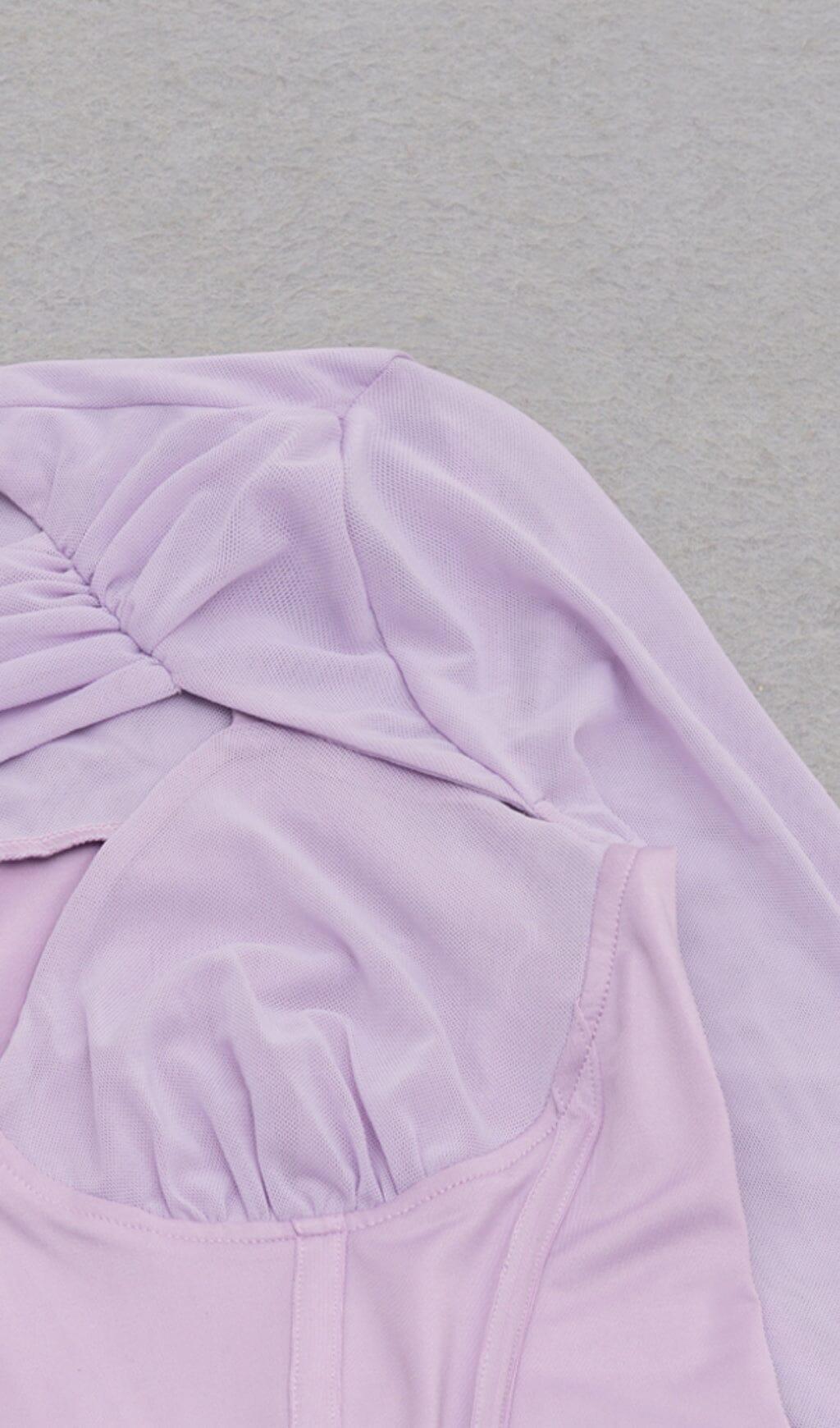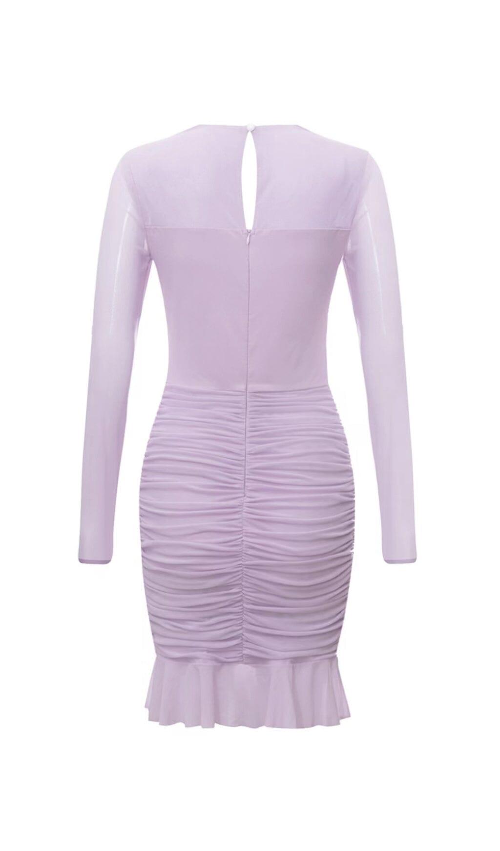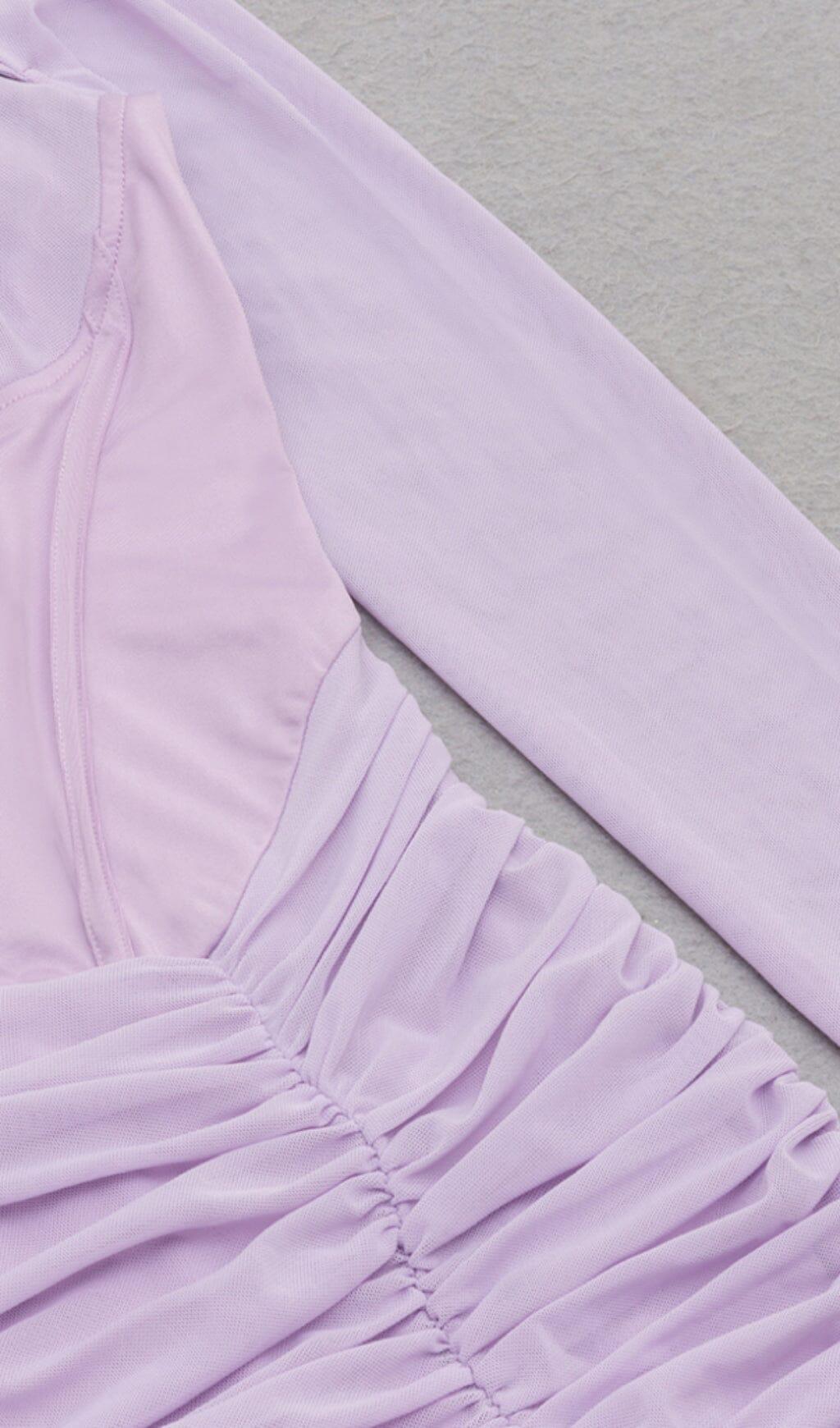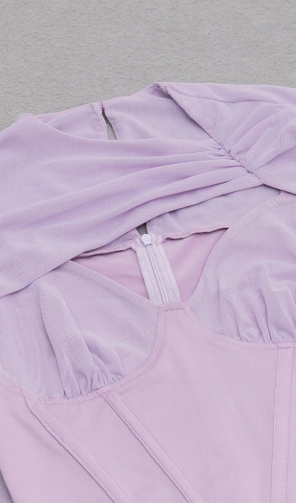 IRREGULAR CUT FISH BONE LOTUS LEAF FOLD DRESS IN MAUVE