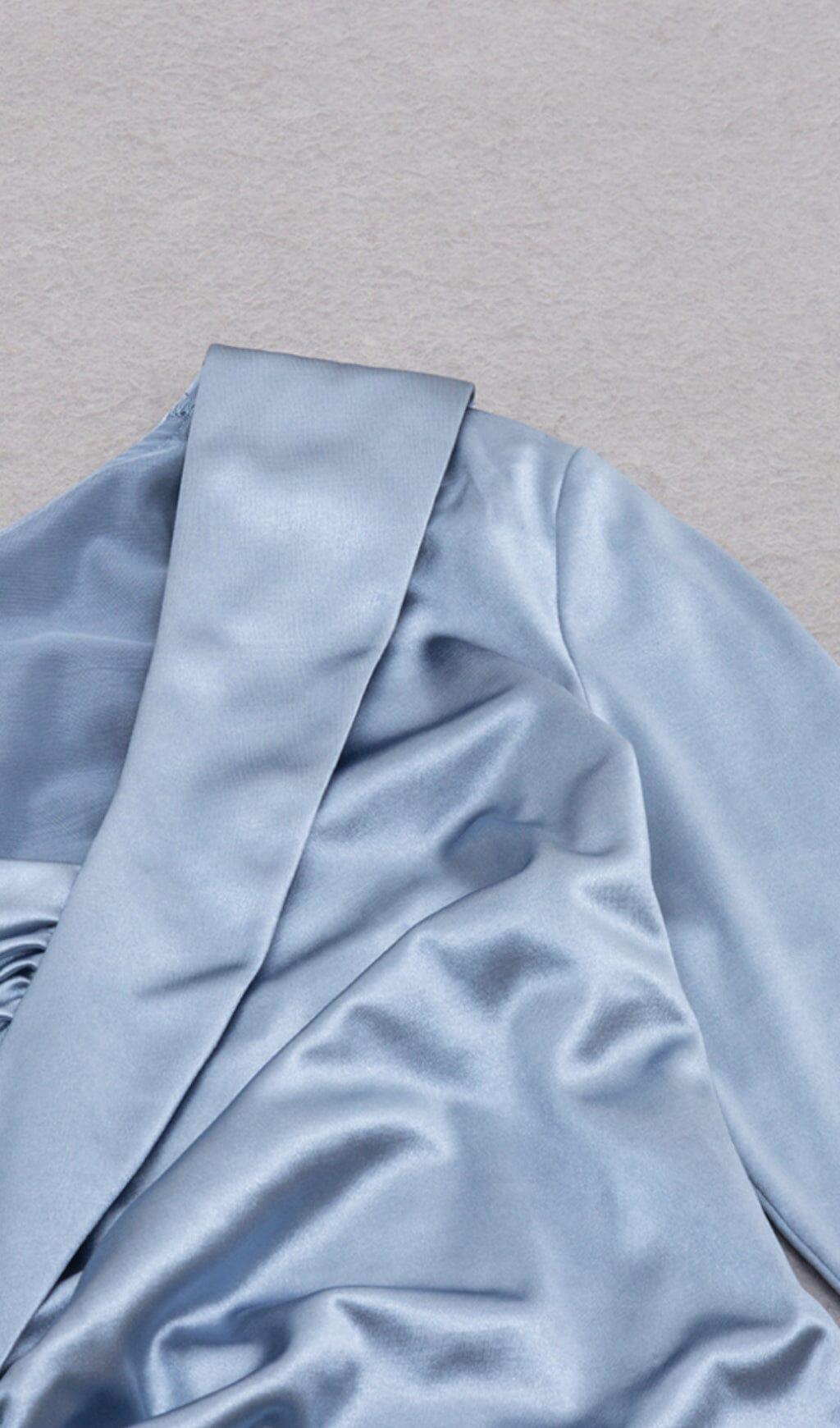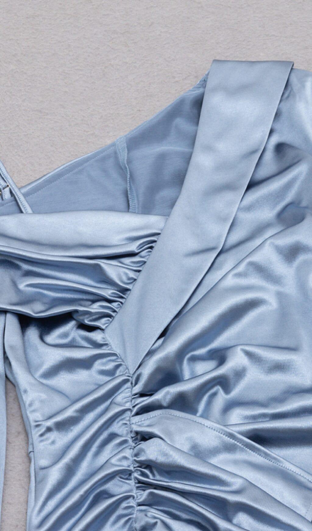 IRREGULAR OFF SHOULDER FLOUNCES DRESS IN GRAY-BLUE