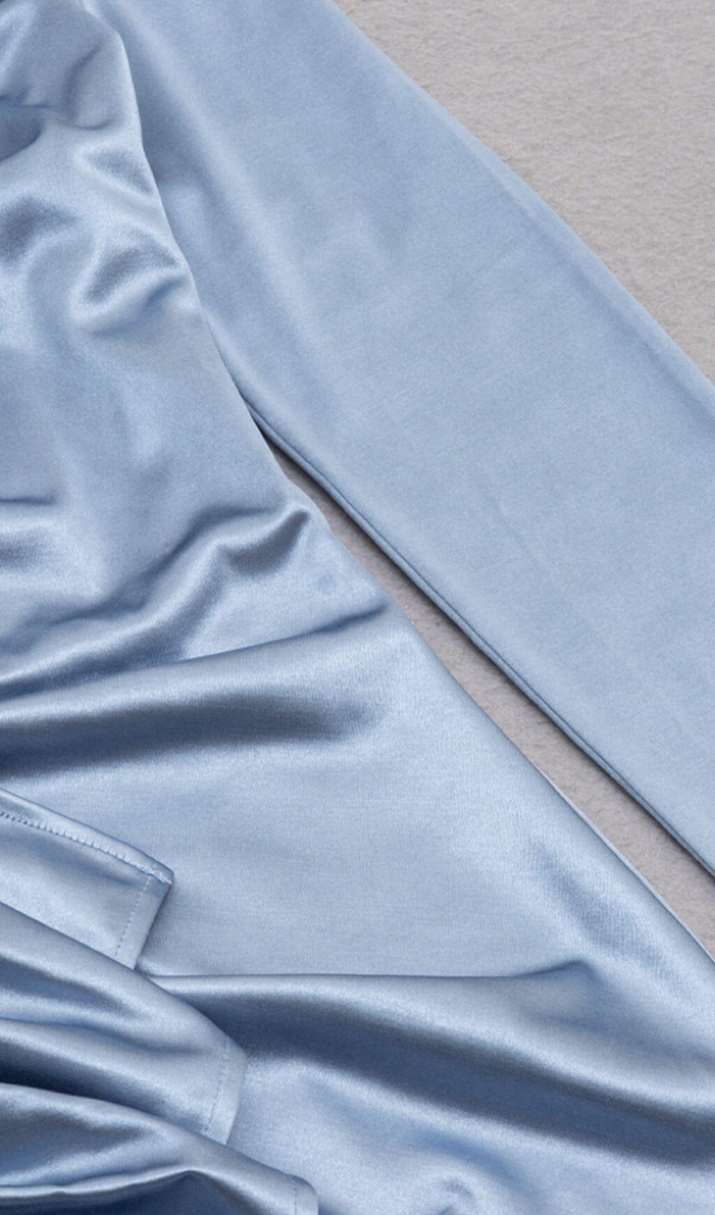 Step into a world of timeless glamour and delicate femininity with our Irregular Off Shoulder Flounces Dress in Gray-Blue. Crafted from soft grey-blue fabric, this dress exudes an elegant and glamorous luster that will catch everyone's eye under any light. Whether you're attending a date night or a special occasion, this dress is the perfect choice to make a lasting impression.