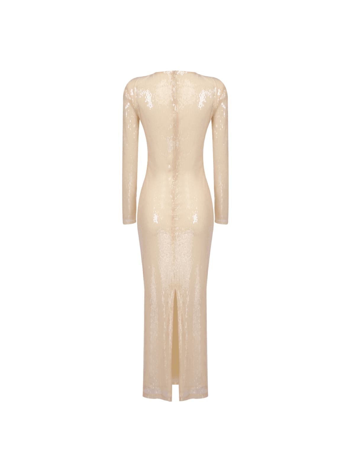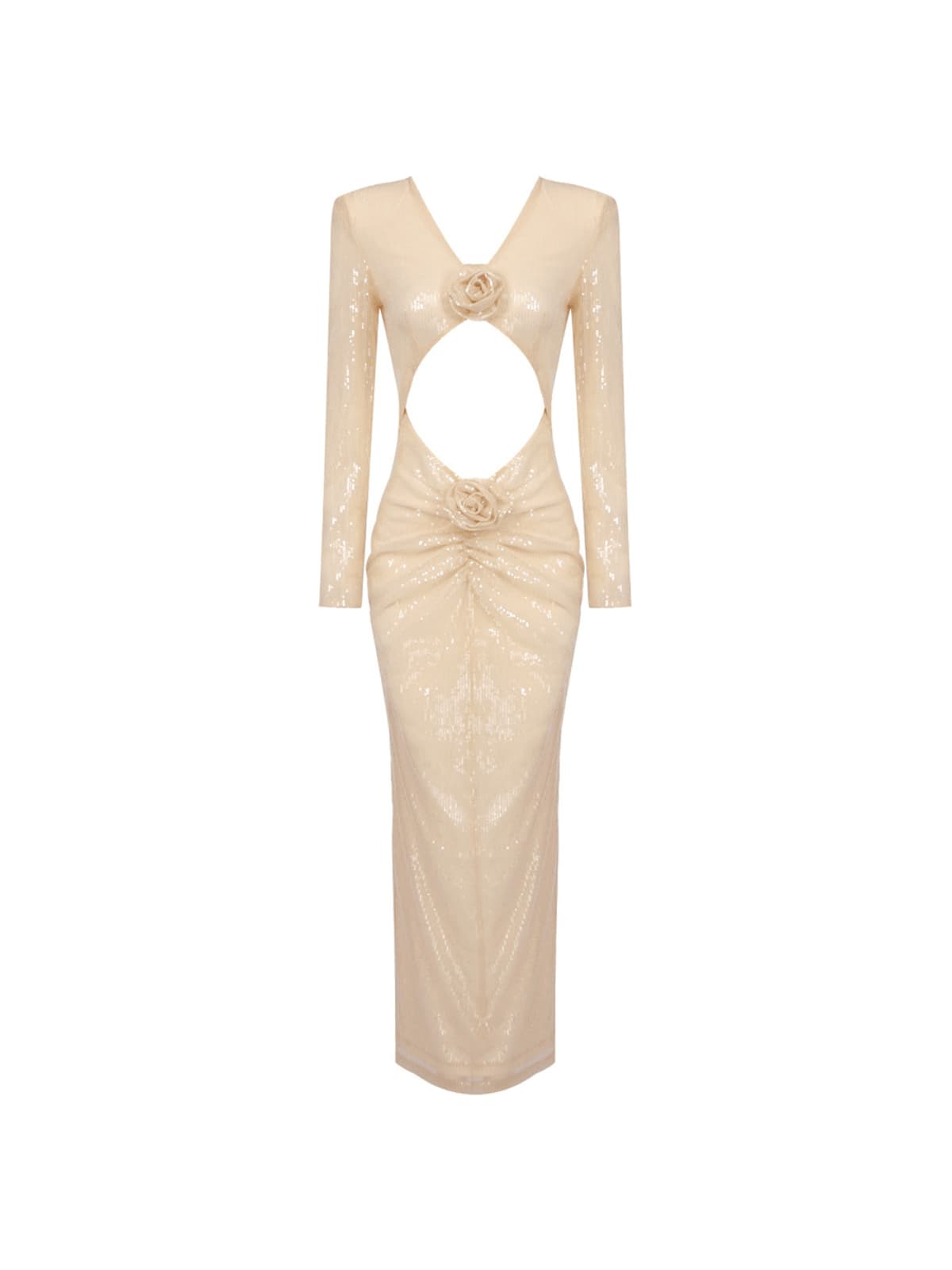 Isak Long Sleeve Flower Cutout Sequin Dress In Apricot