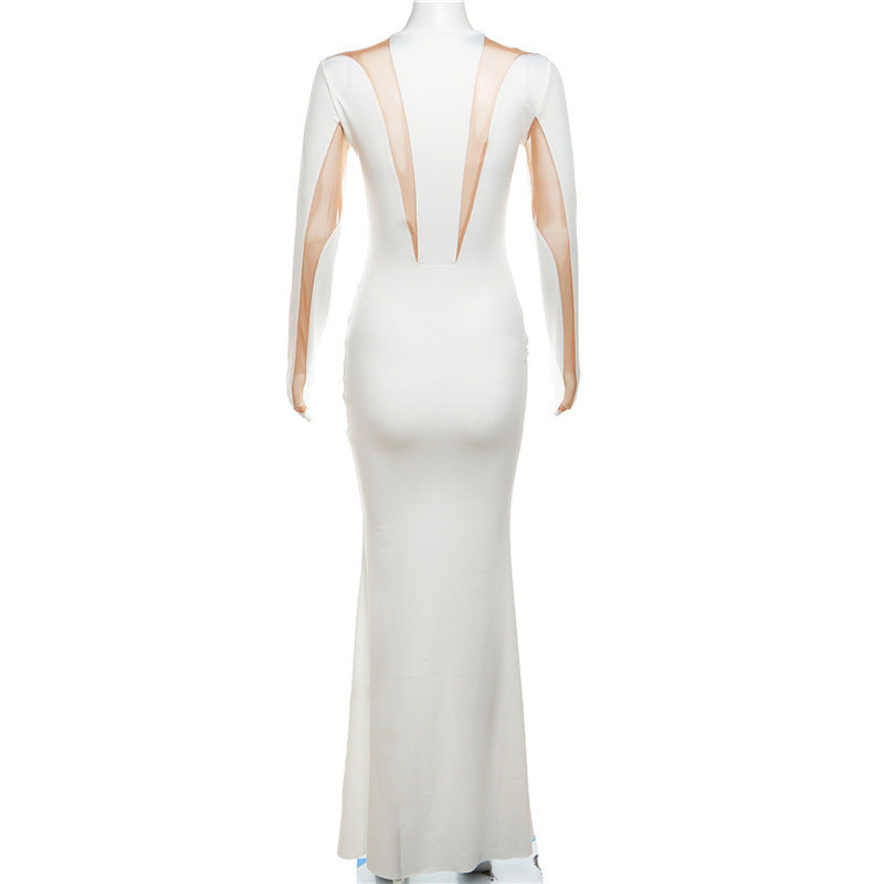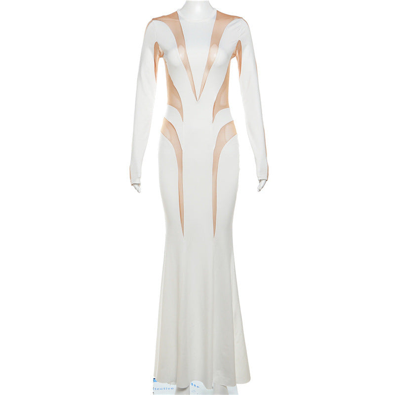 ARMANDO WHITE MESH BODYCON MAXI DRESS