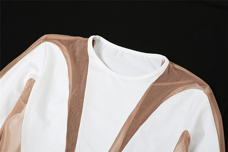 Turn heads in this stunning Long Sleeve Mesh Bodycon Maxi Dress. Boasting a sheer mesh upper, this dress is designed to flatter your curves and provide maximum comfort with its body-hugging fit. The beautiful long sleeve and maxi length provide a graceful look that will have all eyes on you. Dare to show off your figure with this eye-catching must-have dress!