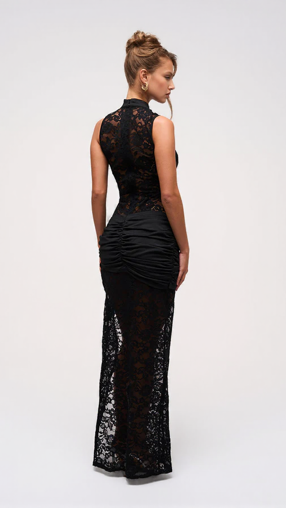 IVANA BLACK LACE MAXI GOWN | SLEEVELESS, HIGH SLIT & KEYHOLE NECKLINE