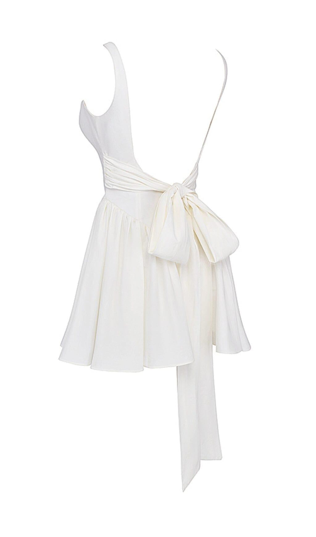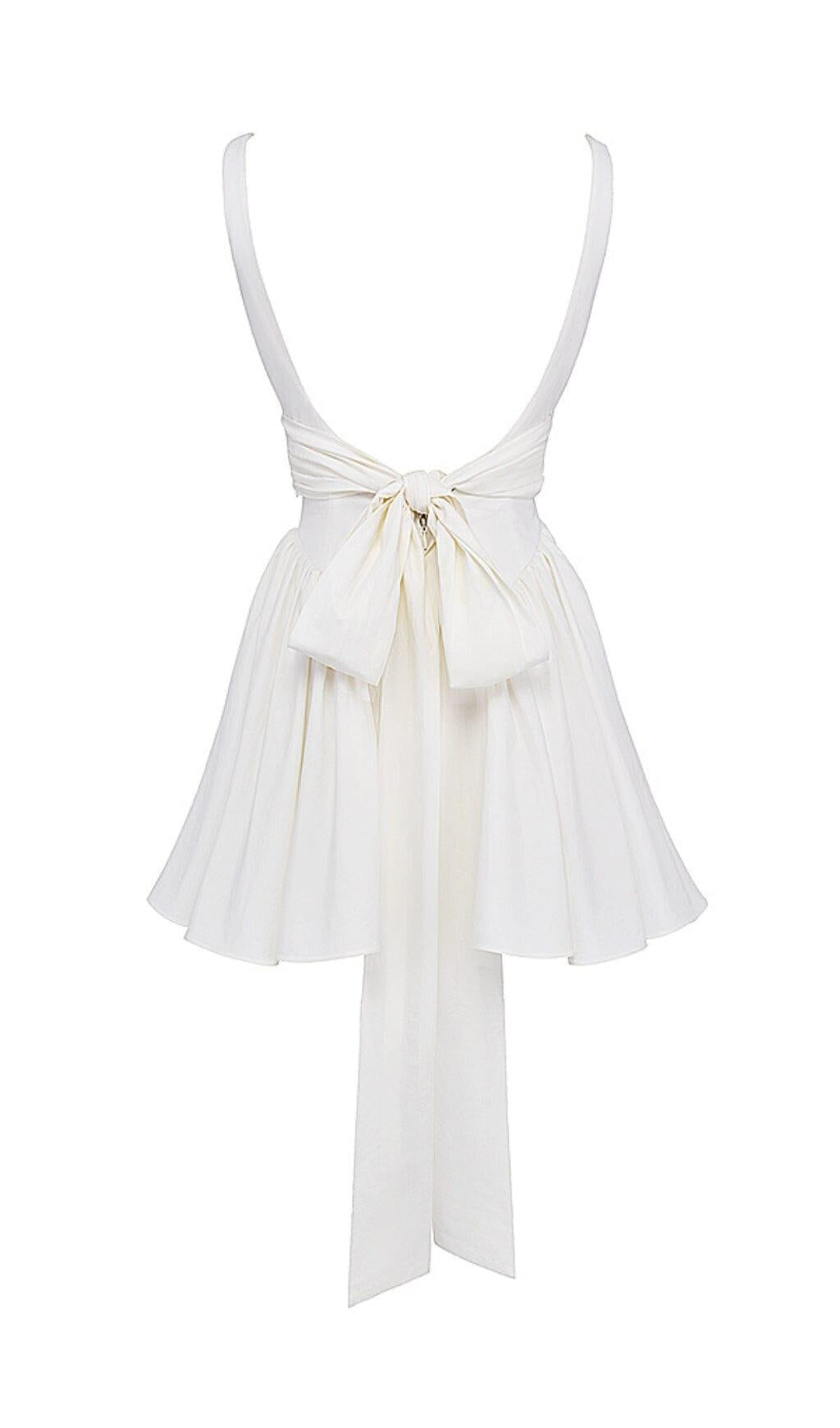 THE dress for warm spring and summer days, our ivory bow mini dress has a striking silhouette. It's cut from ivory cotton and the close fitting bodice is fitted with our incredible corsetry boning that turns to reveal an ultra low open back, complete with an oversized bow for feminine drama.
