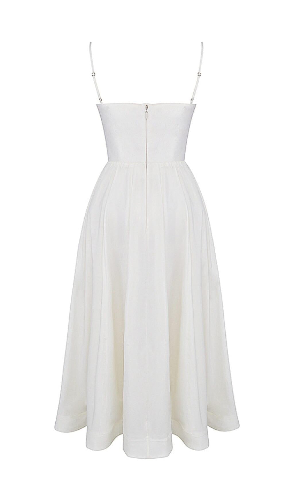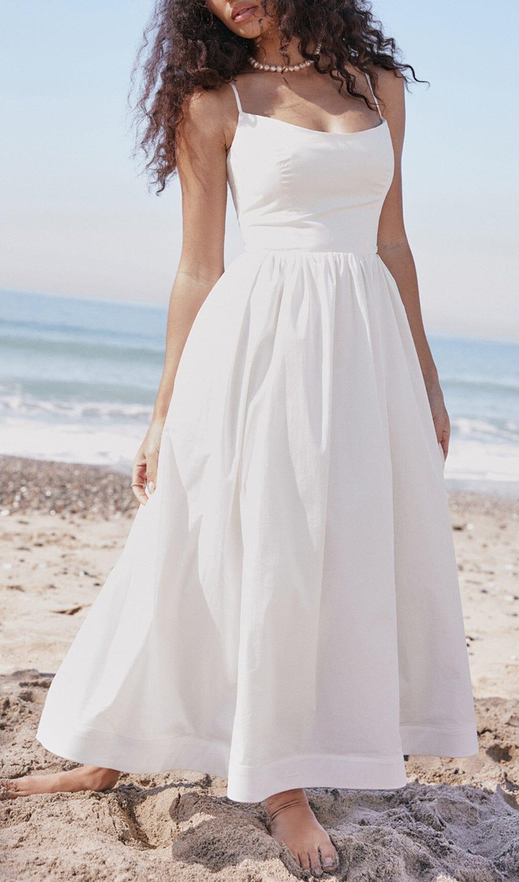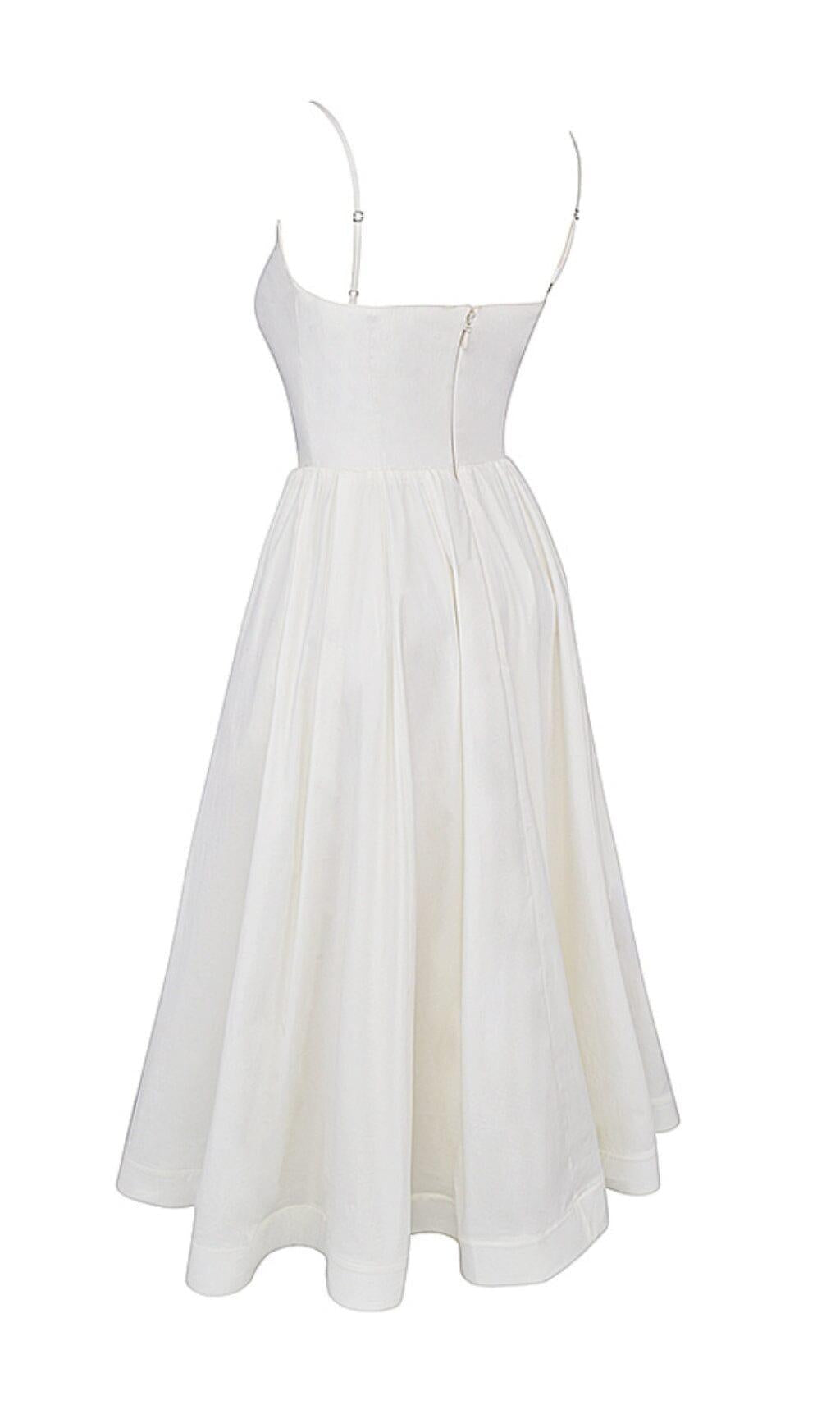 Feminine, floaty, and perfect for Spring, the Ivory Corset Sundress is a must-have addition to your wardrobe. Made from breezy stretch cotton in an elegant ivory color, this sundress offers a fresh and comfortable feel. What sets it apart is the boned bodice that cinches the waist, creating a flattering silhouette. The slender straps are adjustable, ensuring the perfect fit for any body type. We love how the pleated waist falls to a flared midi hem, adding a touch of feminine flair.