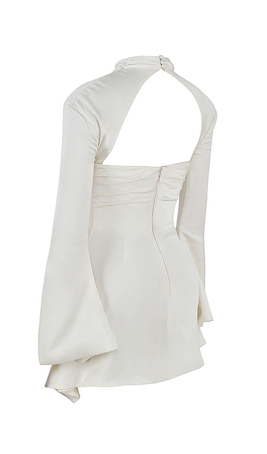 Introducing our Ivory Drape Cut Out Mini Dress, the perfect choice for a variety of occasions. Stand out from the crowd with this stunning dress that combines elegance and style.