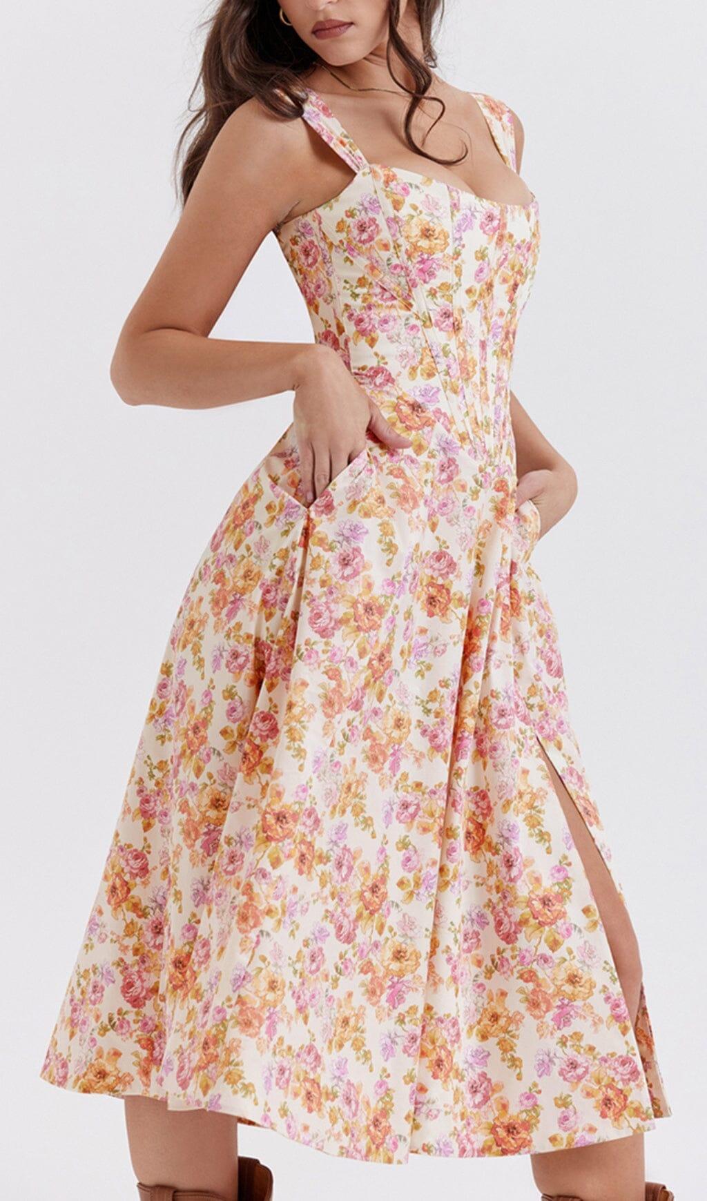 IVORY FLORAL MIDI SUNDRESS