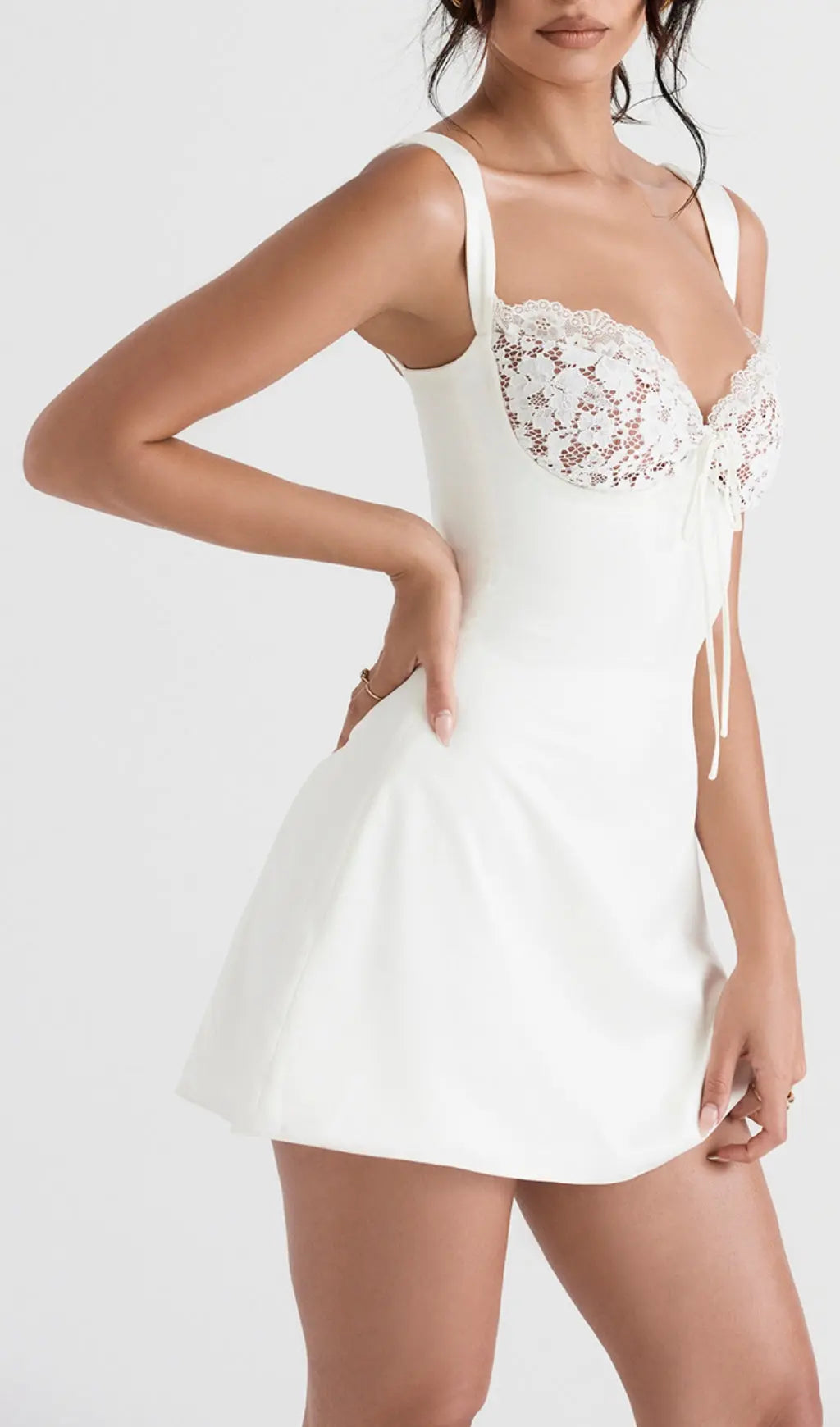 IVORY SATIN AND LACE MINI DRESS