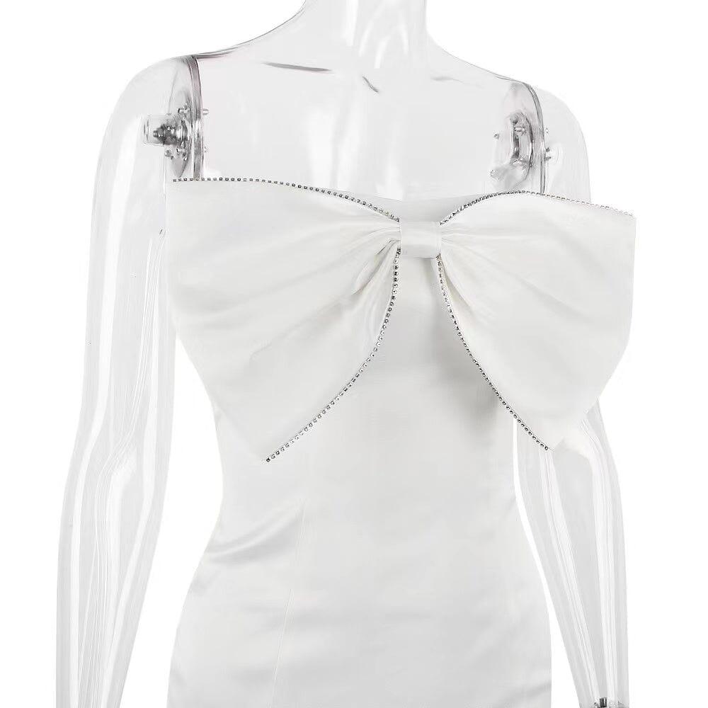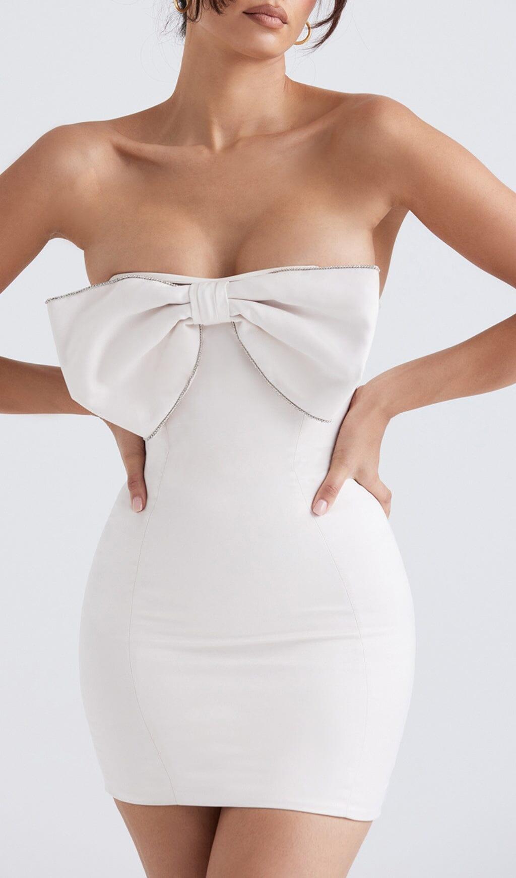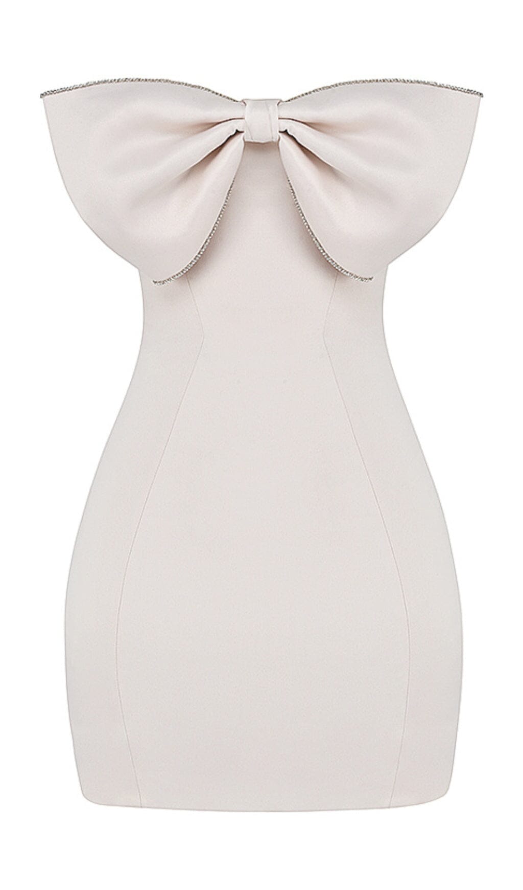 IVORY SATIN CRYSTAL EMBELLISHED BOW DRESS